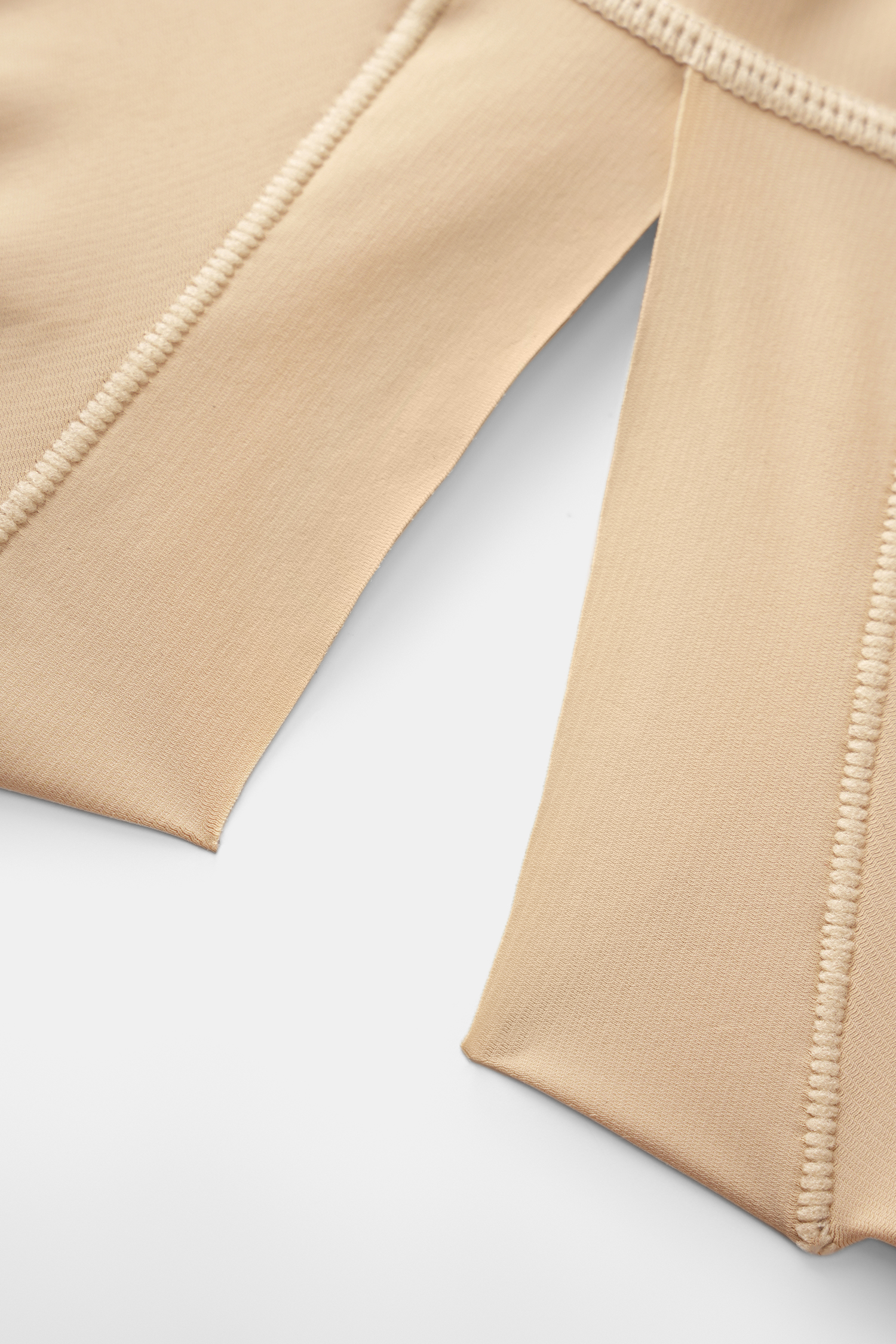 This style features a compressive fit designed for sculpting support which may create a somewhat tight fit. For a more comfortable feel, we recommend sizing up.