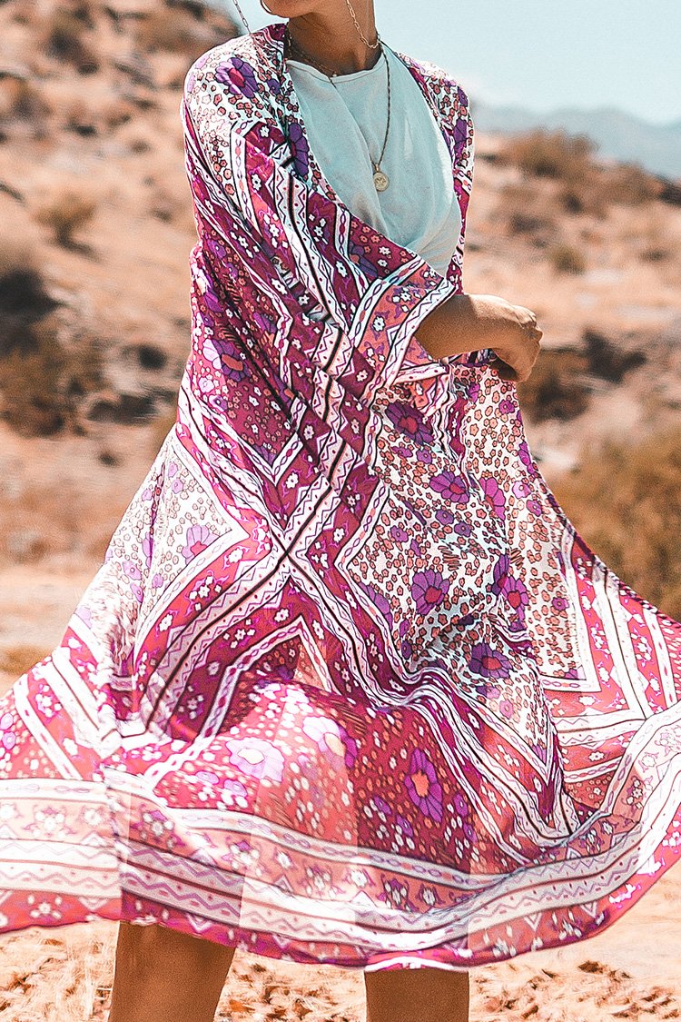 • Pink Floral Kimono Cover Up