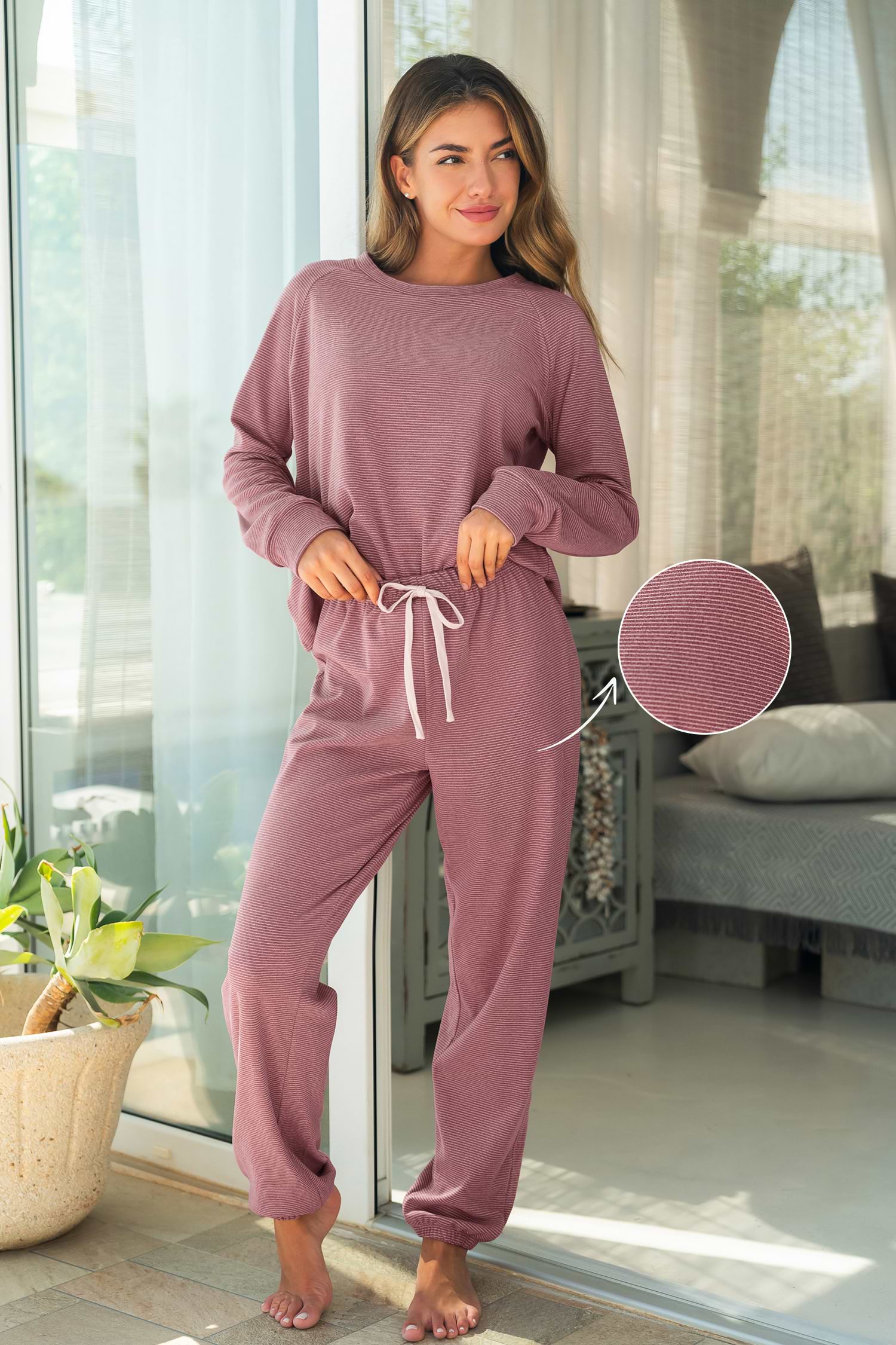 HomePink Long Sleeve Top & Bottoms Pajama Set