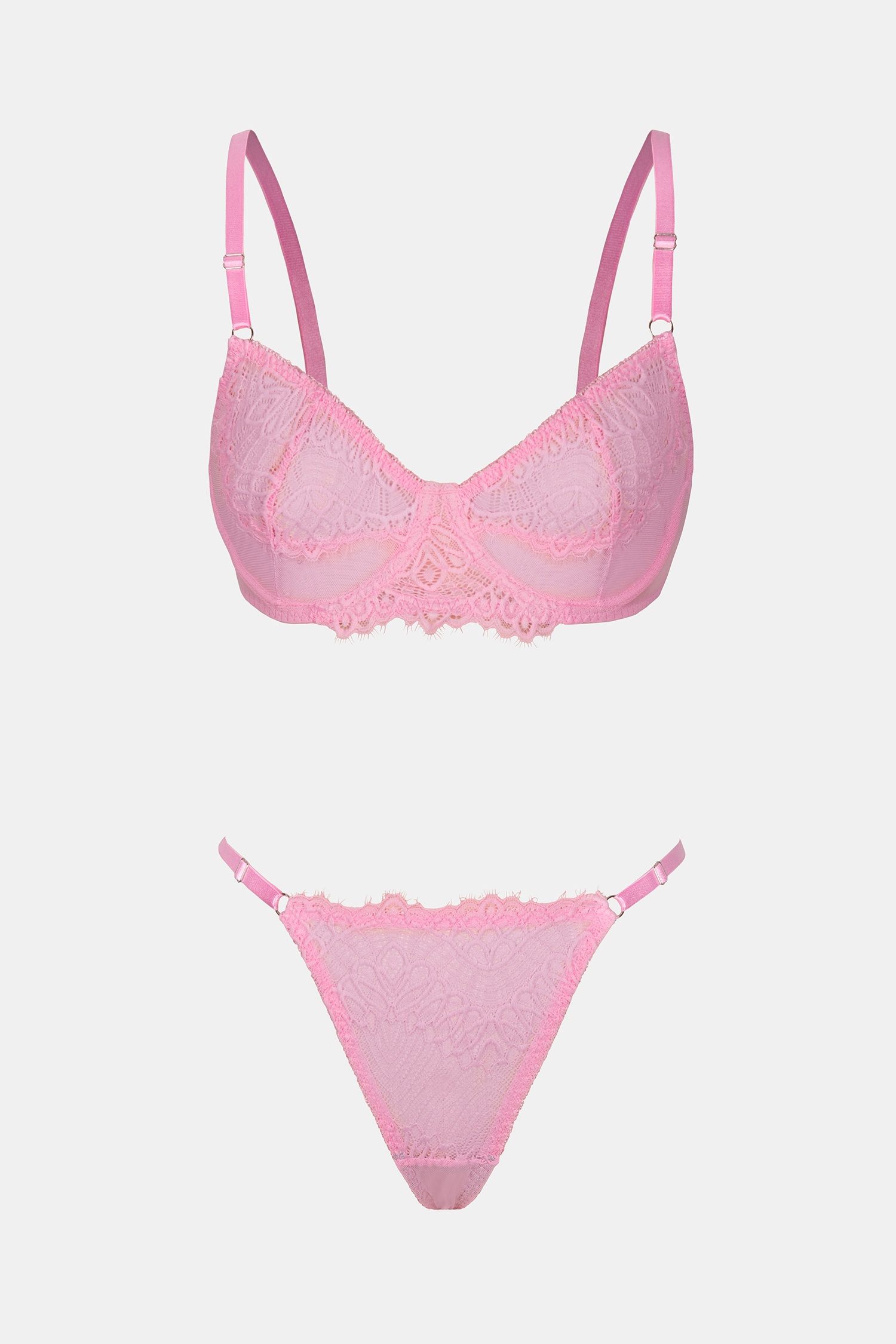 Pink Underwire Bra & Low-Rise Bottoms Lingerie Set