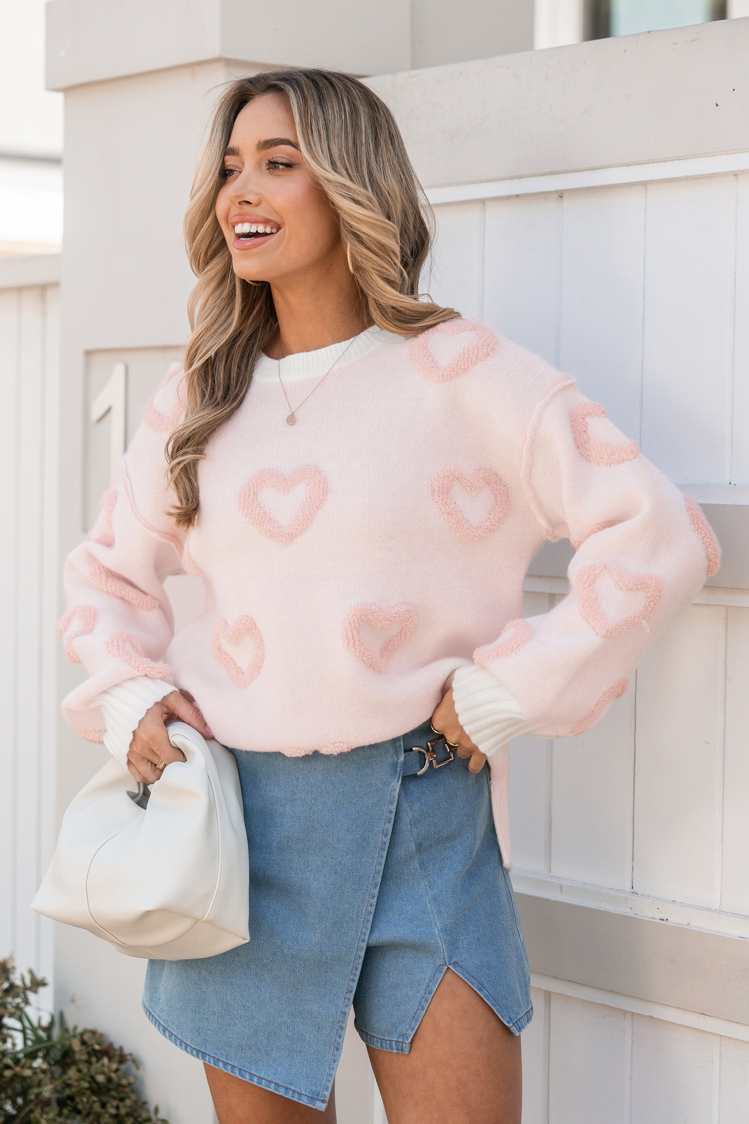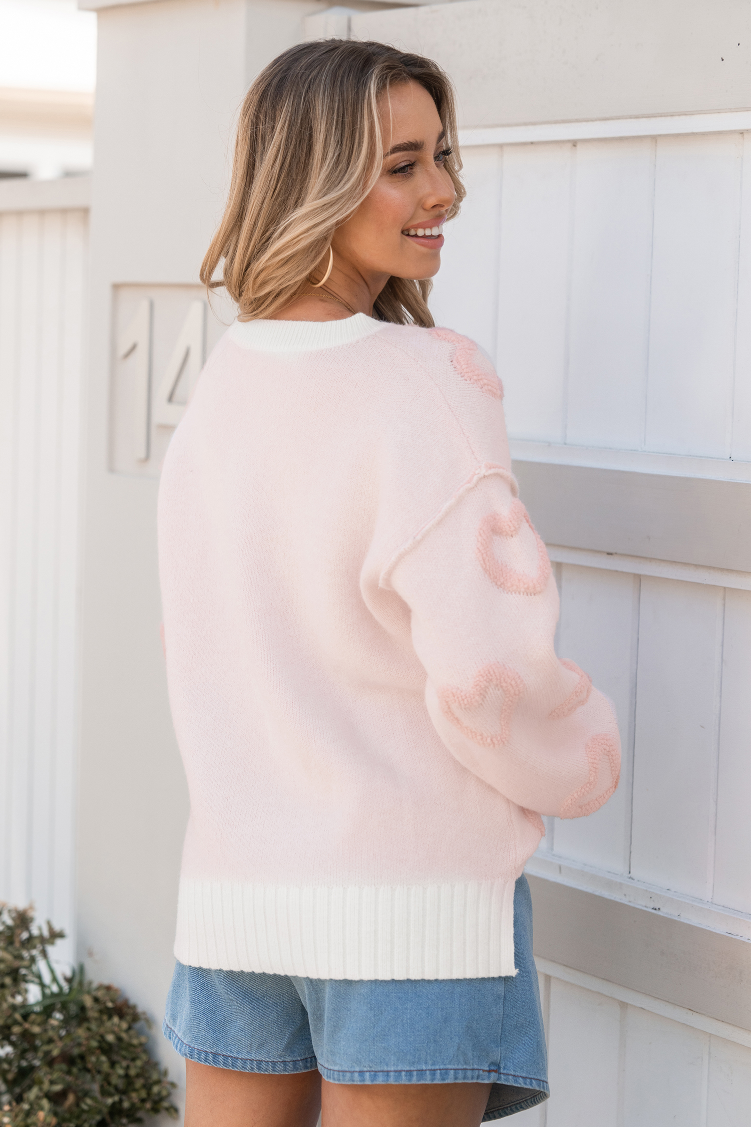 Pink & White Exposed Seam Heart Sweater
