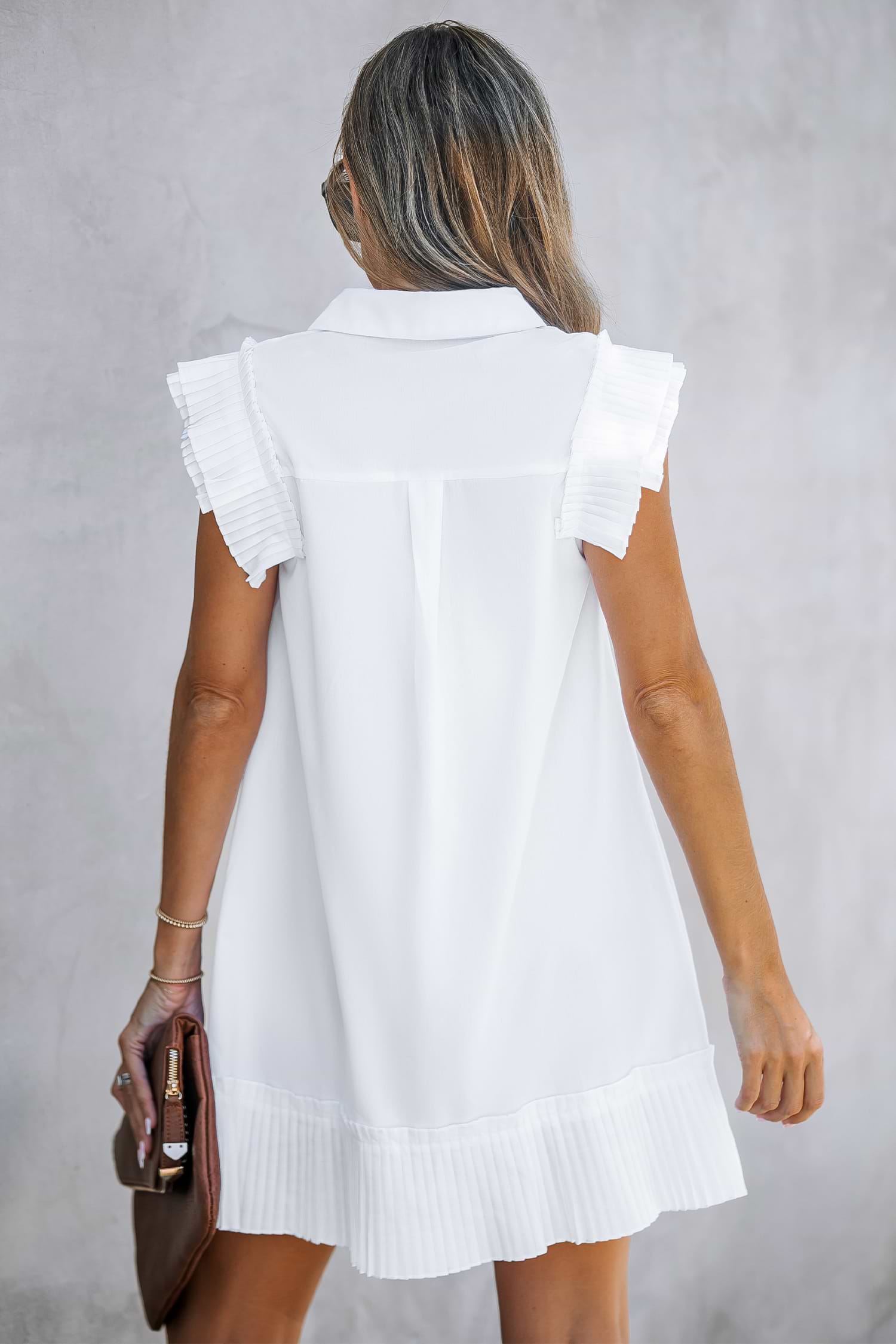 Pleated Button-Front Mini Dress