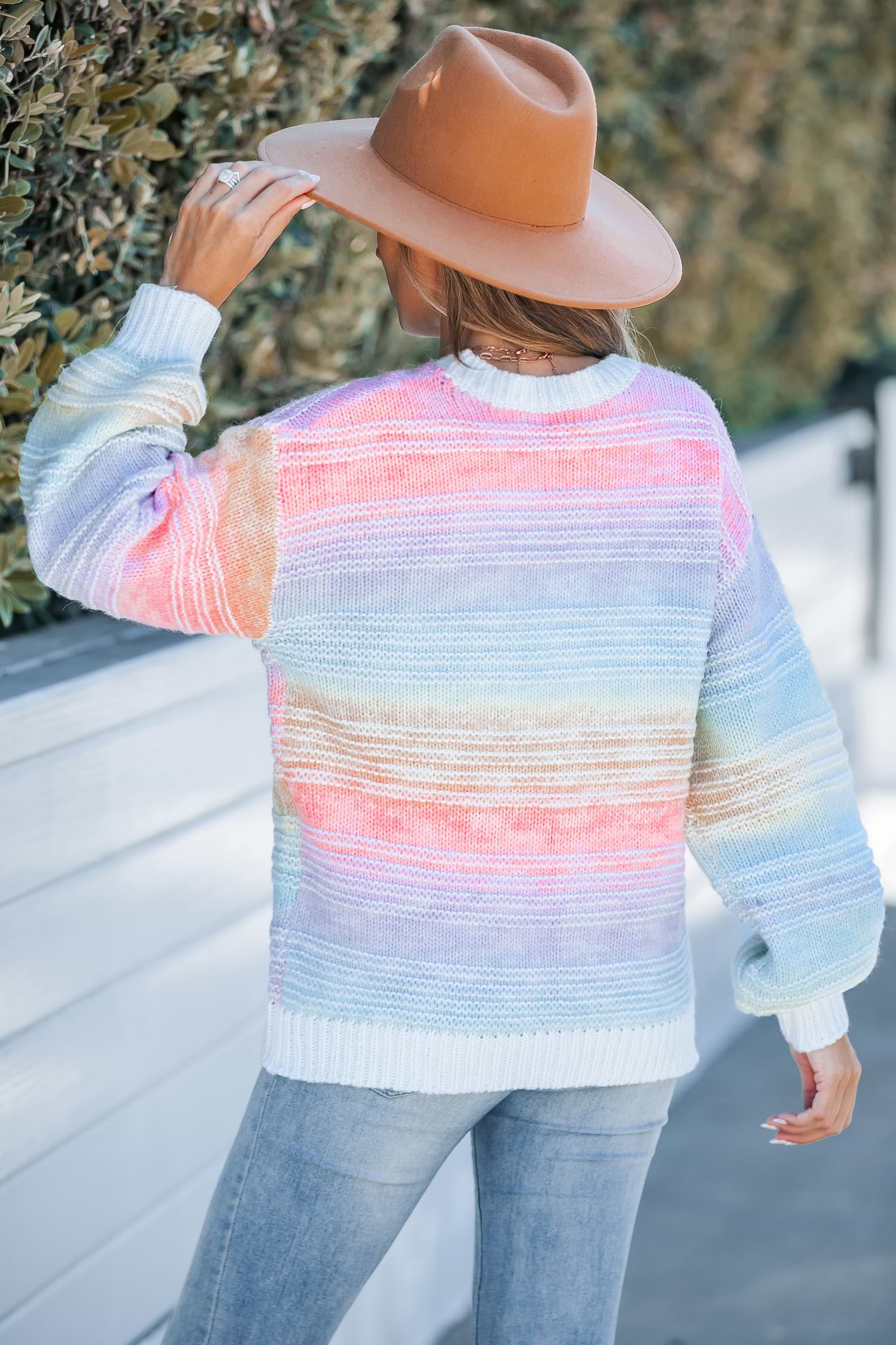 HomeRainbow Knit Round Neck Long Sleeve Sweater