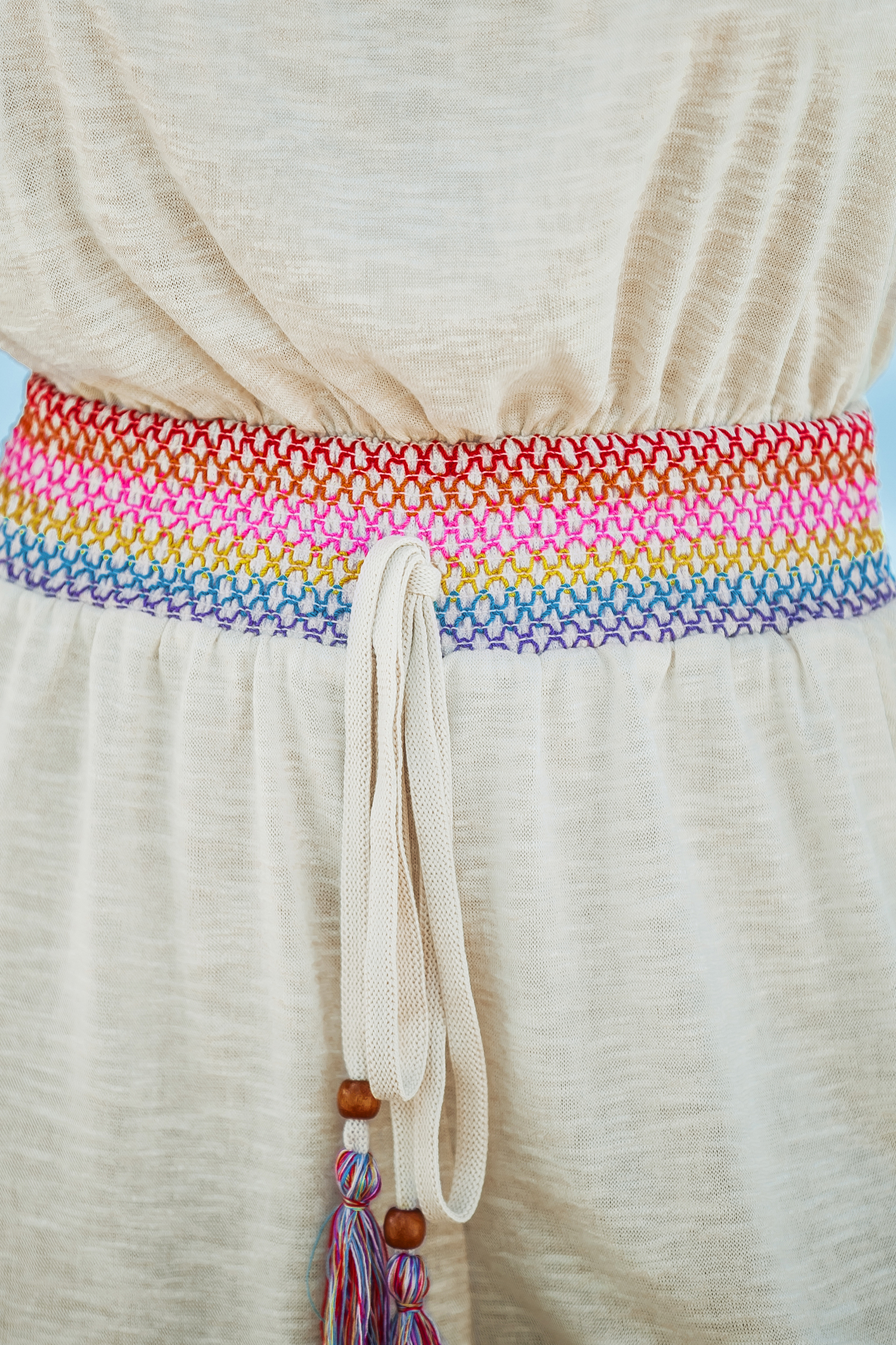 Rainbow Stitch Tassel Cover-Up Tube Romper
