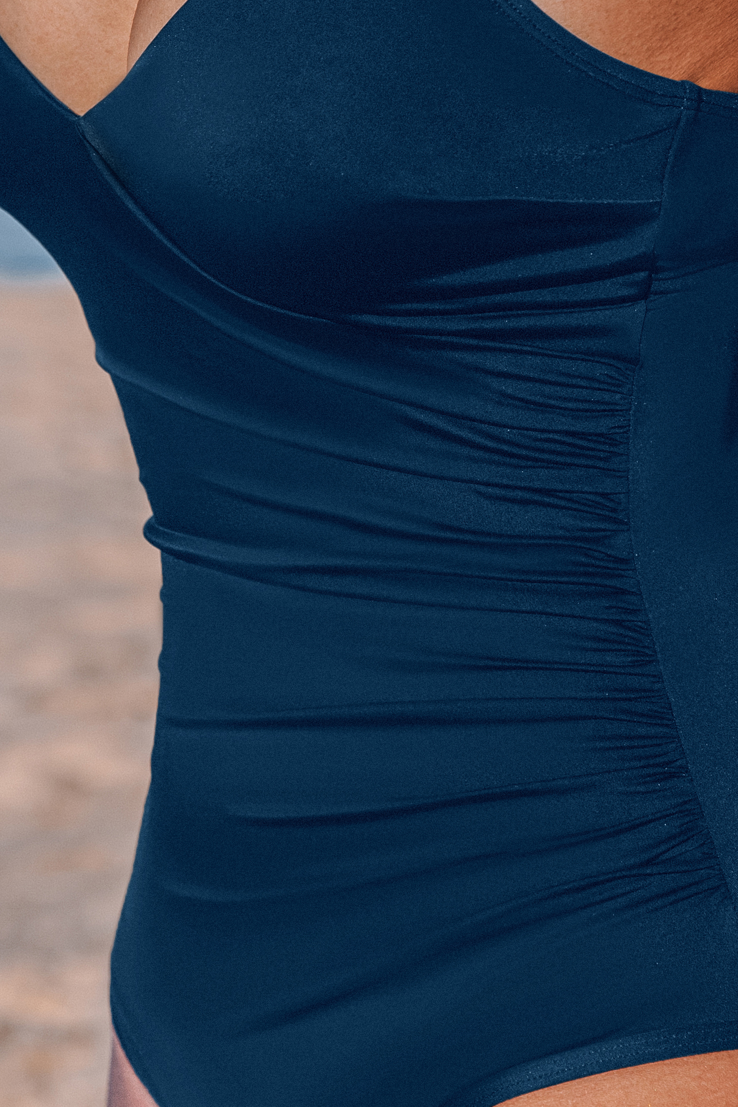 The Rainfall Blue One-Piece Swimsuit keeps things fresh and easy all season long The diamond neckline, adjustable straps, and removable soft cups pair with a standard leg cut and period-friendly feature for a comfortable fit.