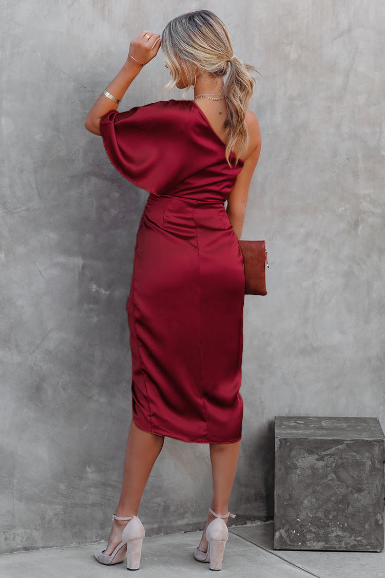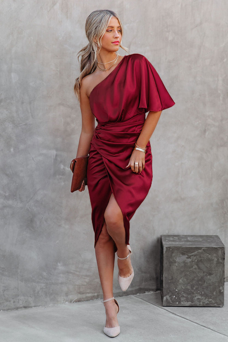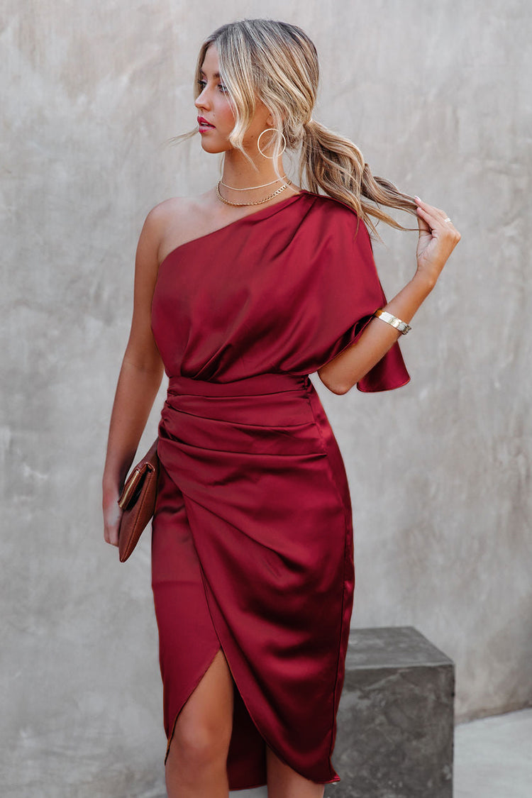 HomeRamla Burgundy Sheath One-shoulder Dress
