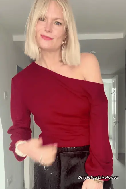 Burgundy Asymmetrical Off-Shoulder Long Sleeve Top
