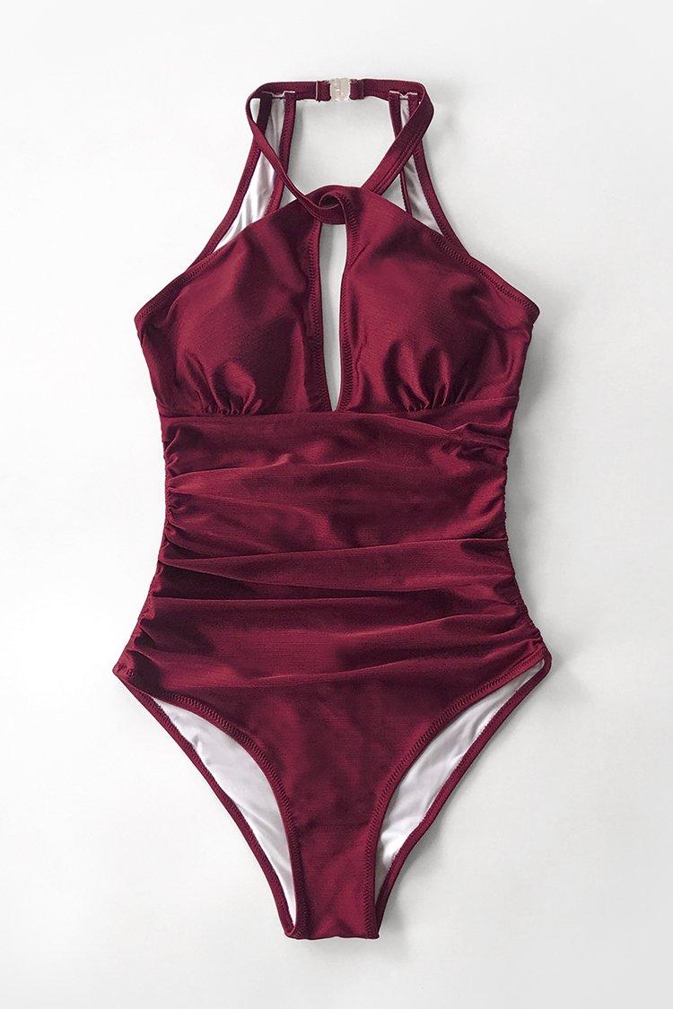 HomeRed Cutout Shirred One-Piece Swimsuit