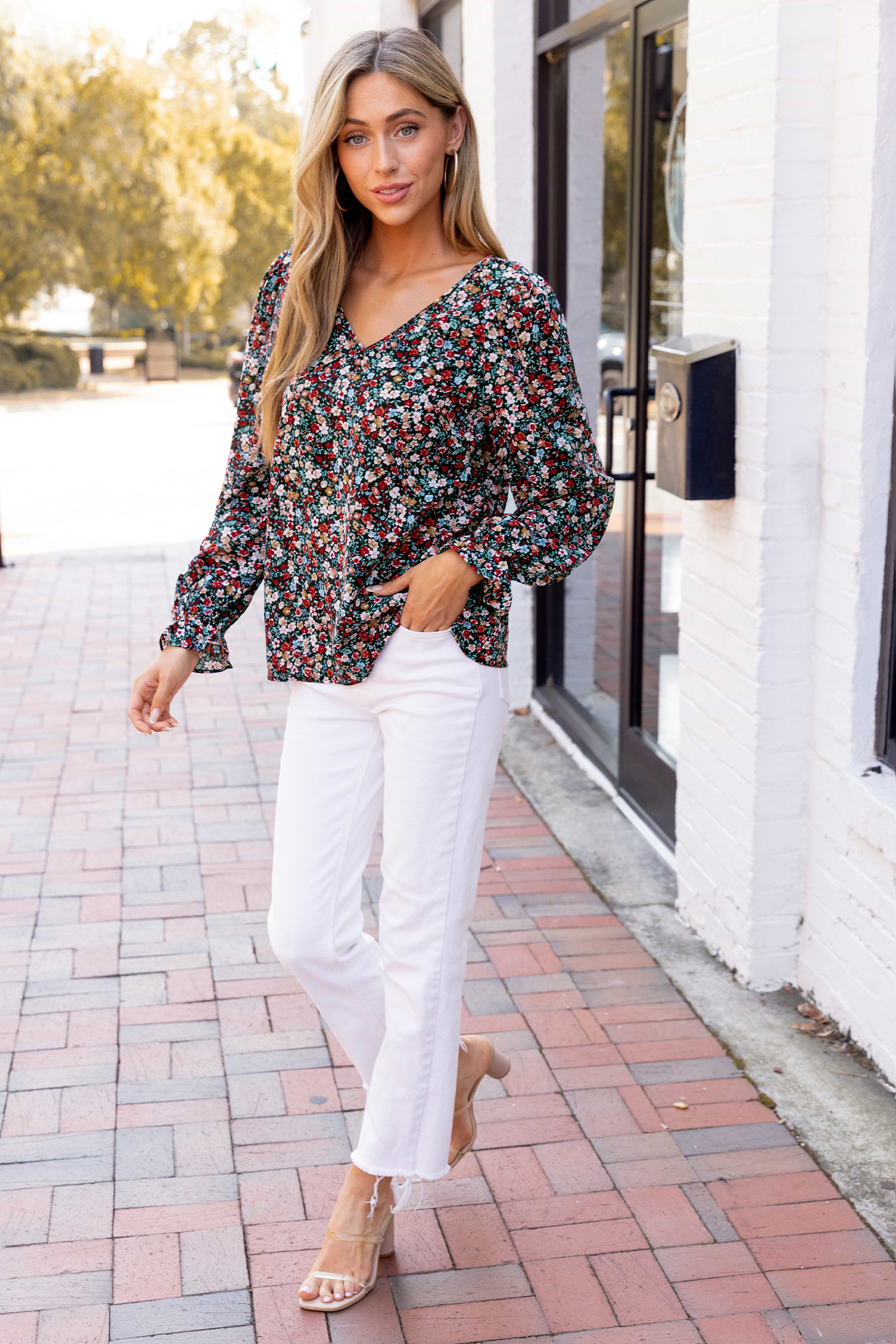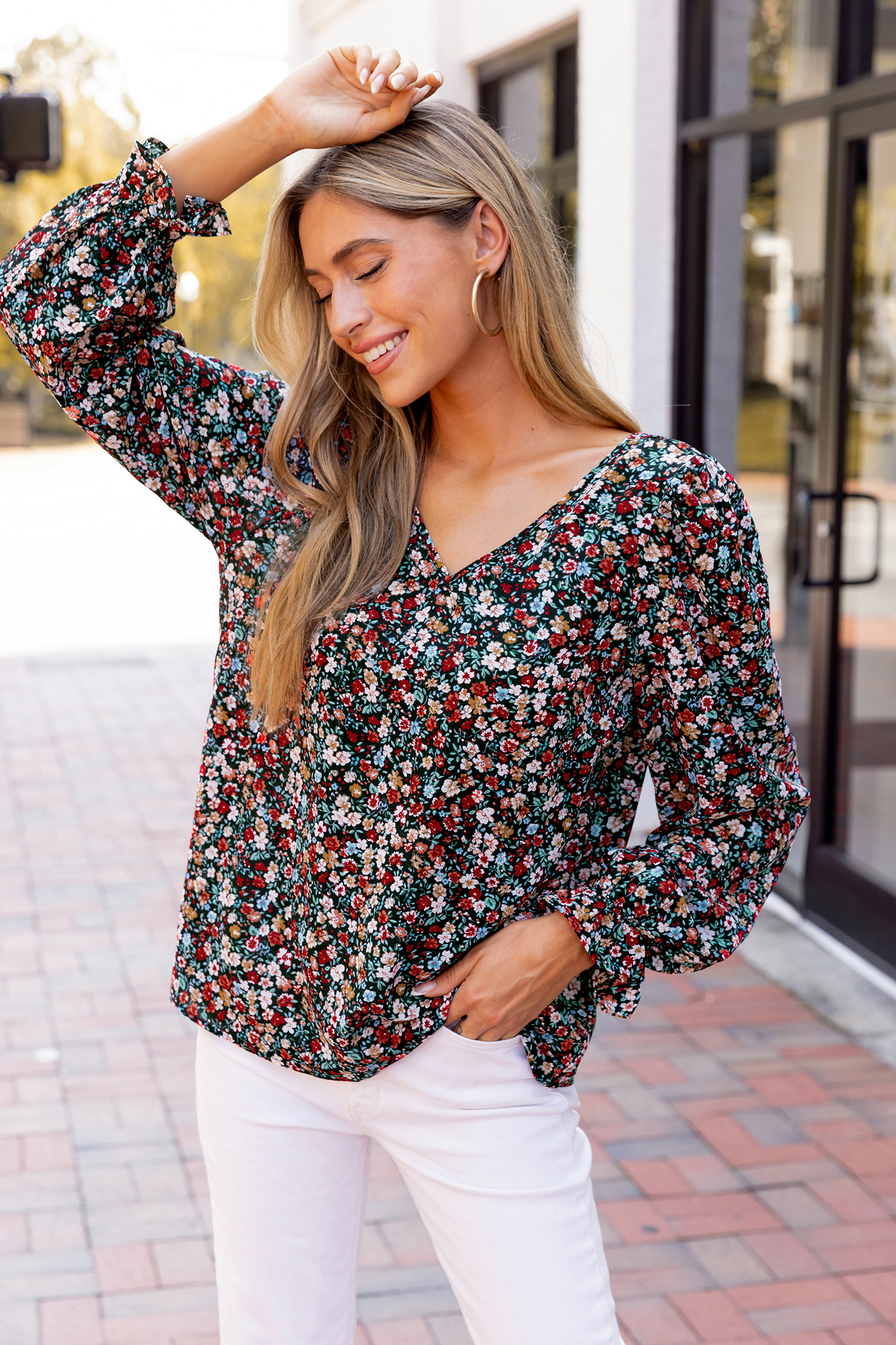 HomeRed Ditsy V-Neck Puff Sleeve Blouse