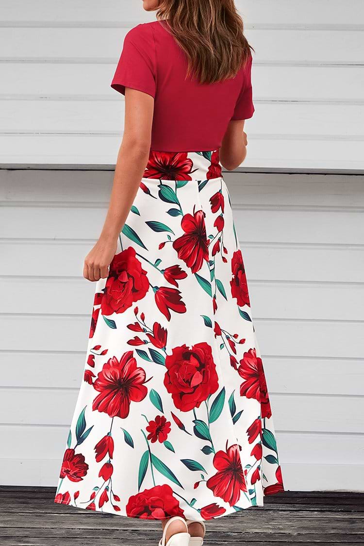 Red Floral Print Maxi Dress