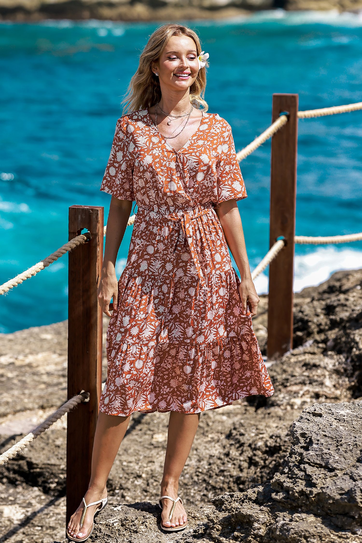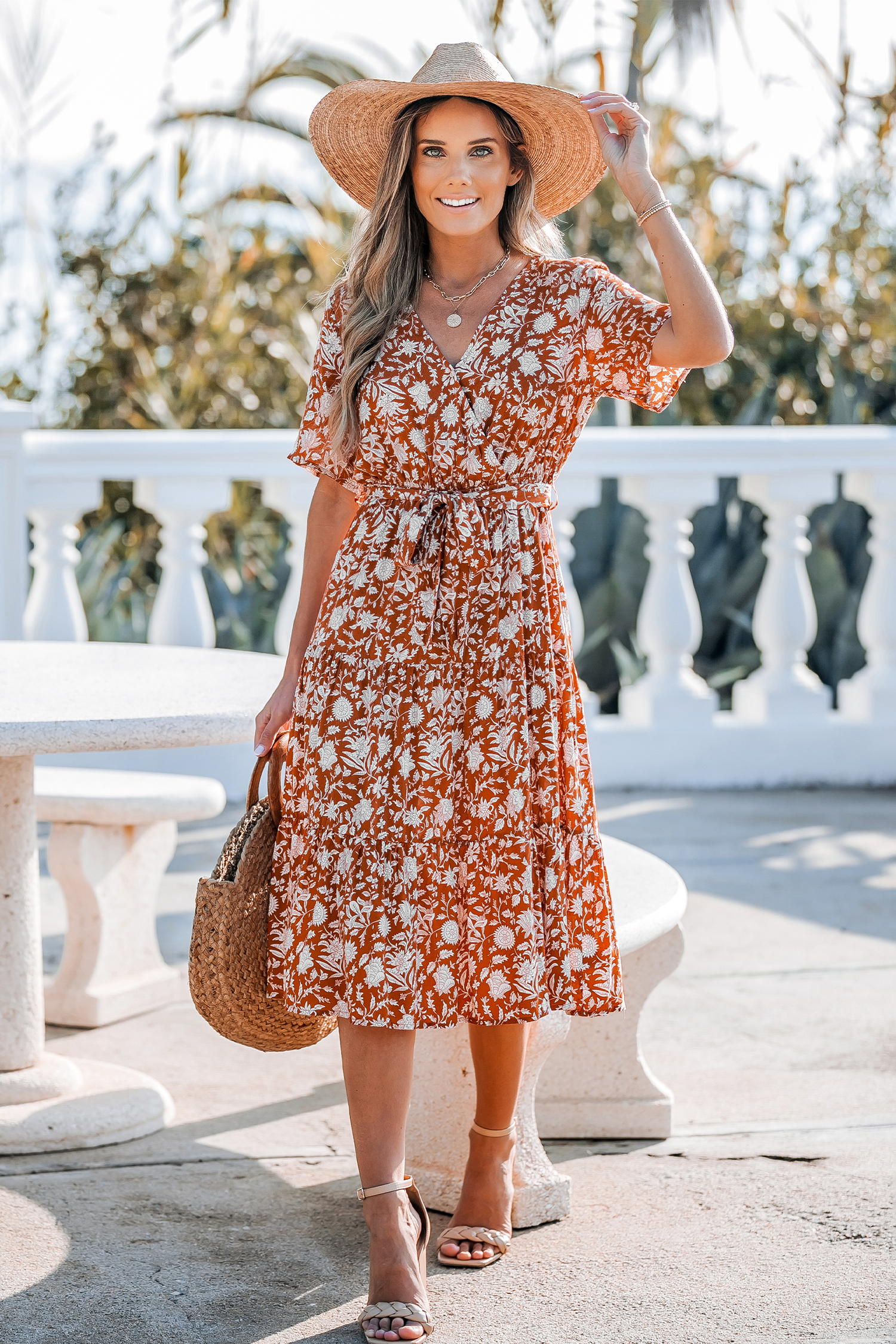 HomeRed Floral Surplice Tie-Waist Maxi Dress