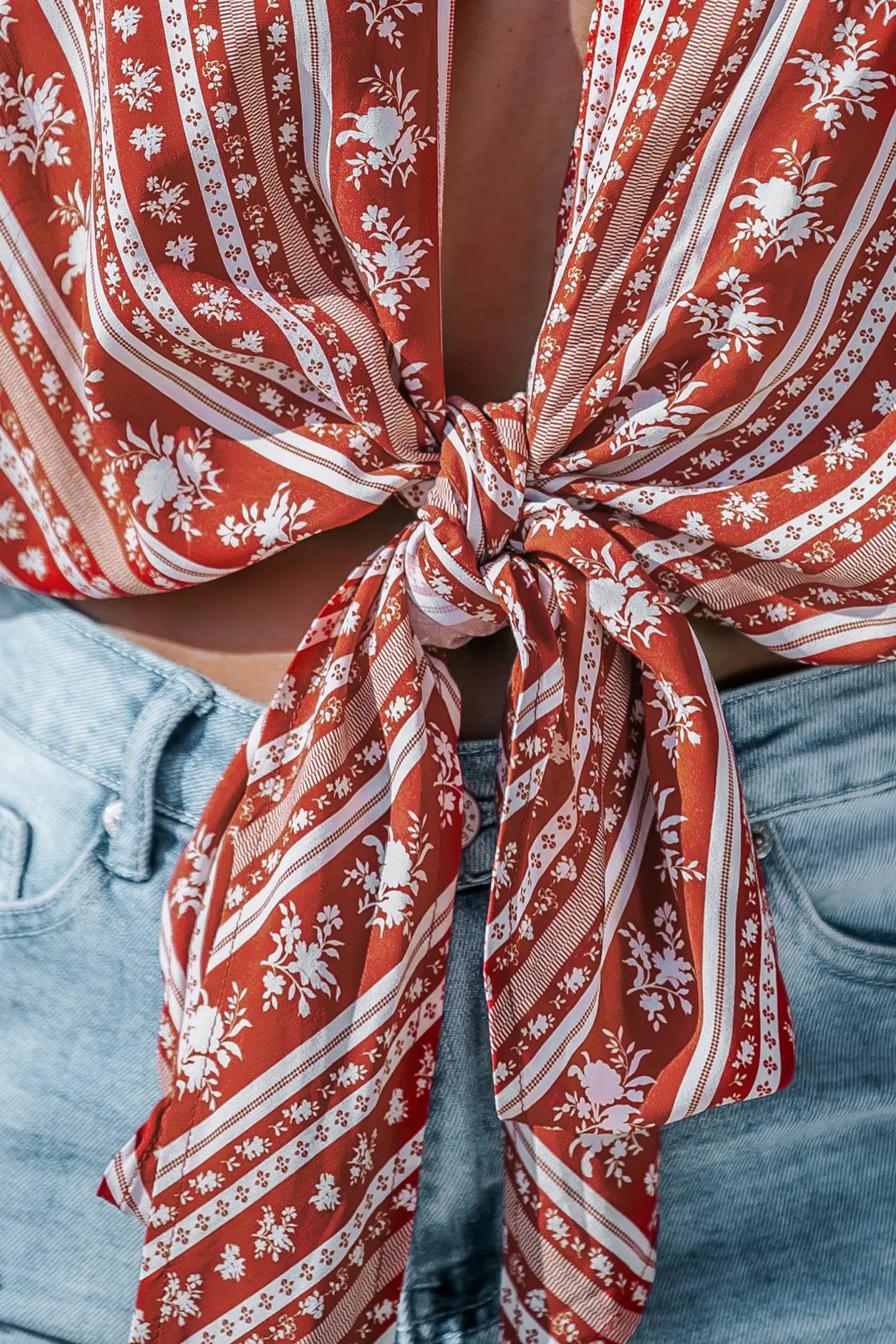 Red Open Front Tie-Waist Boho Cover-Up Top