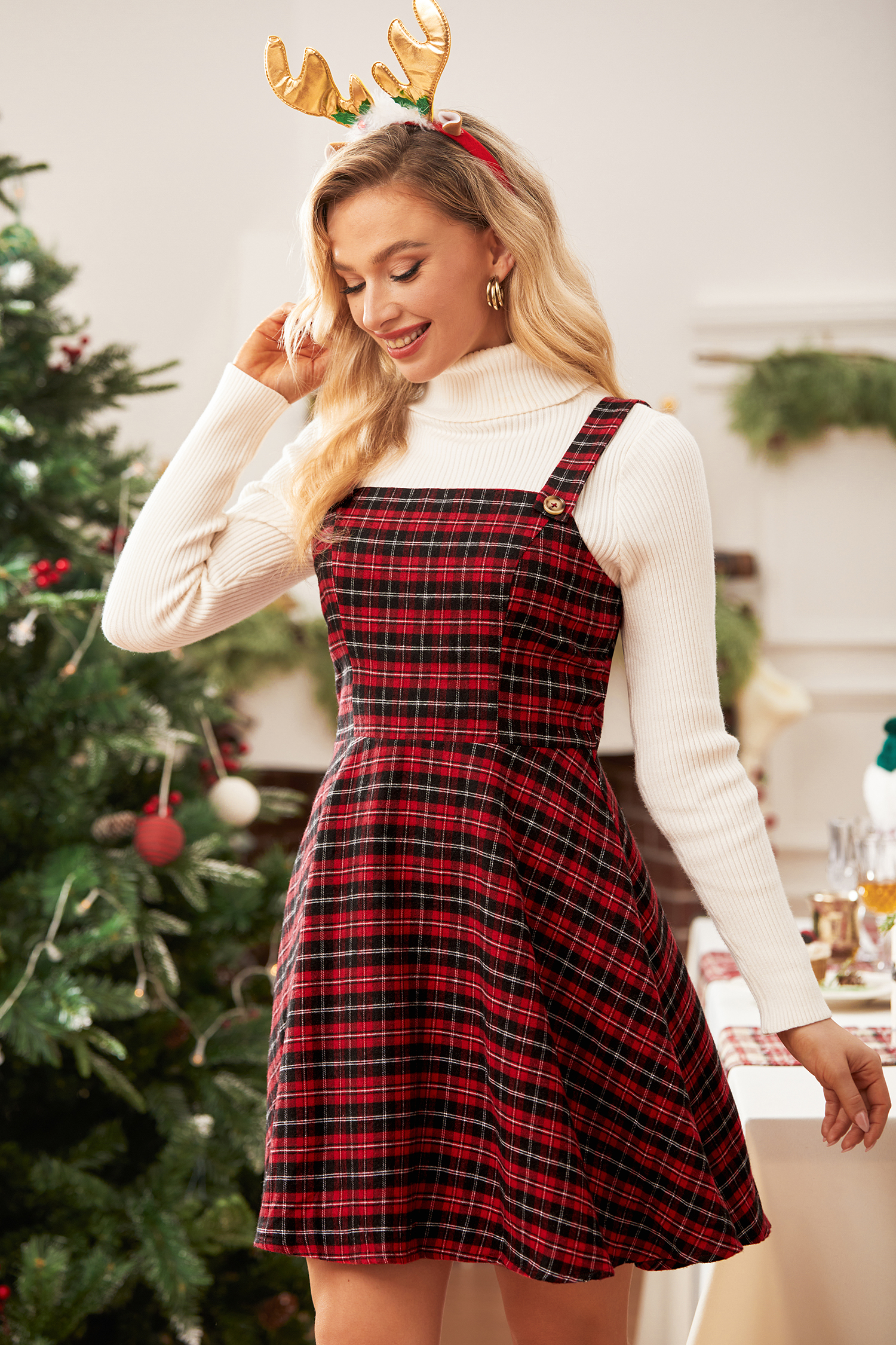 HomeRed Plaid Square Neck Sleeveless Mini Dress