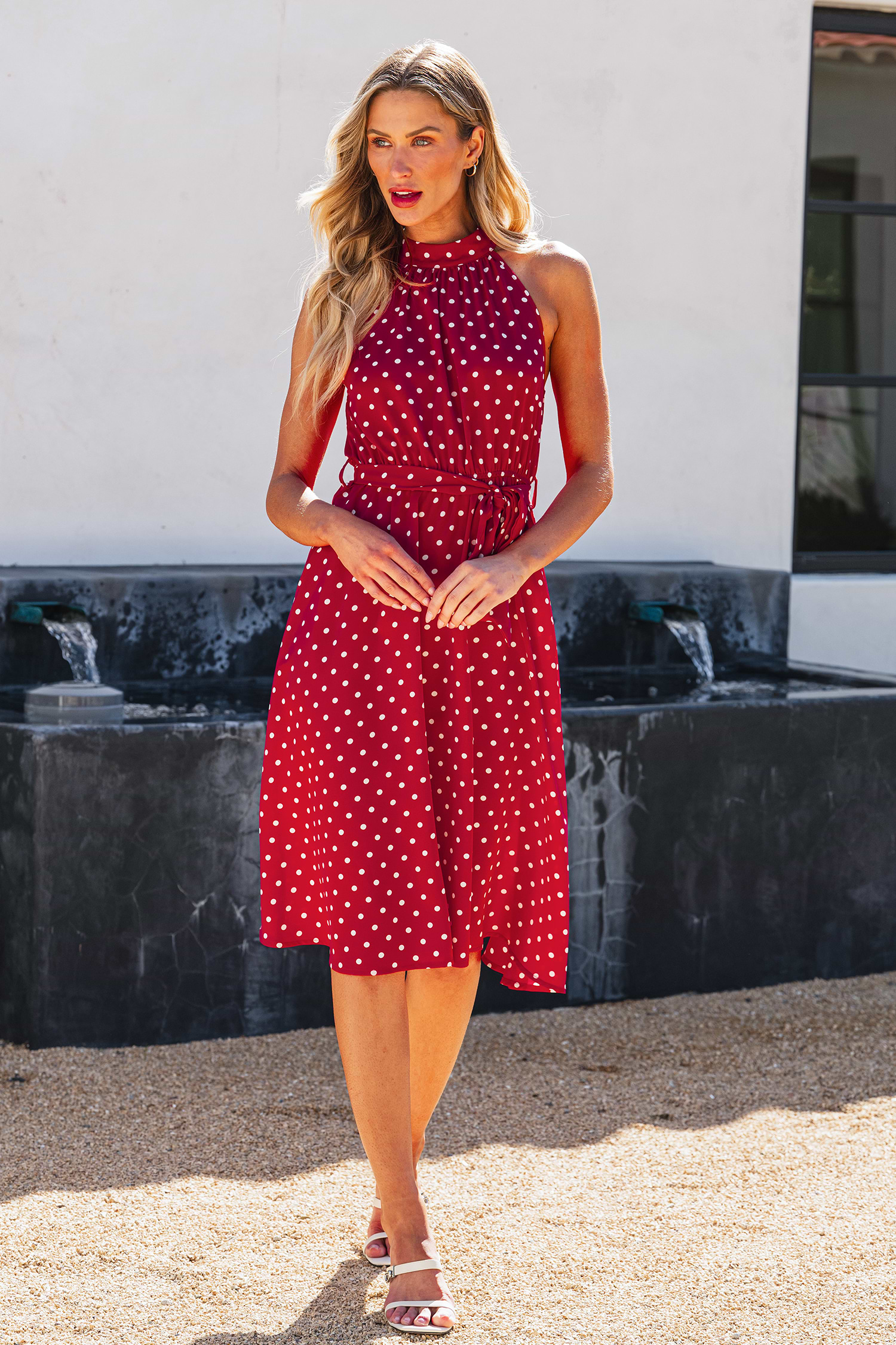 Red Polka Dot High Neck Sleeveless Mini Dress