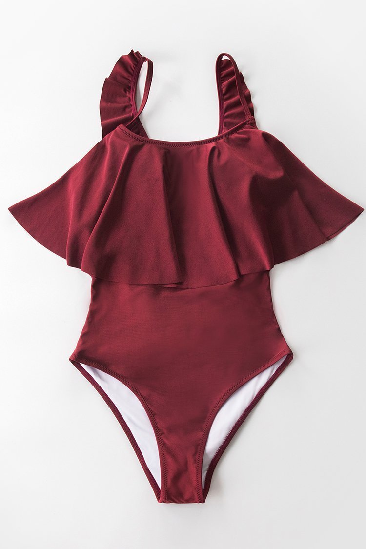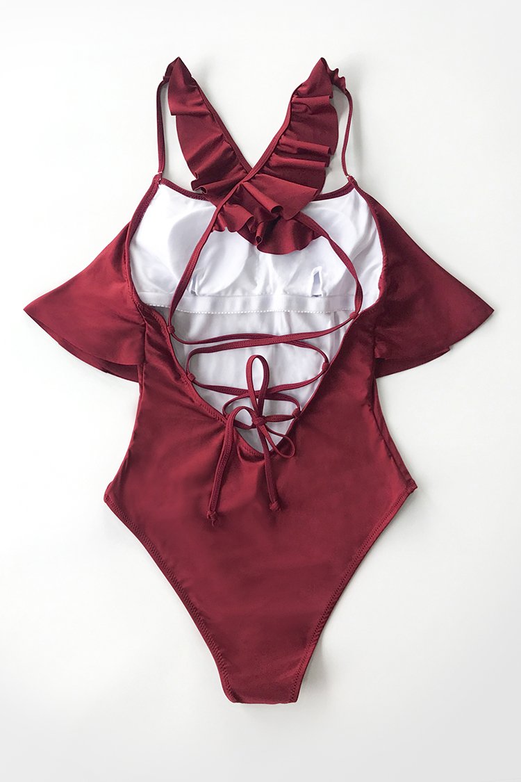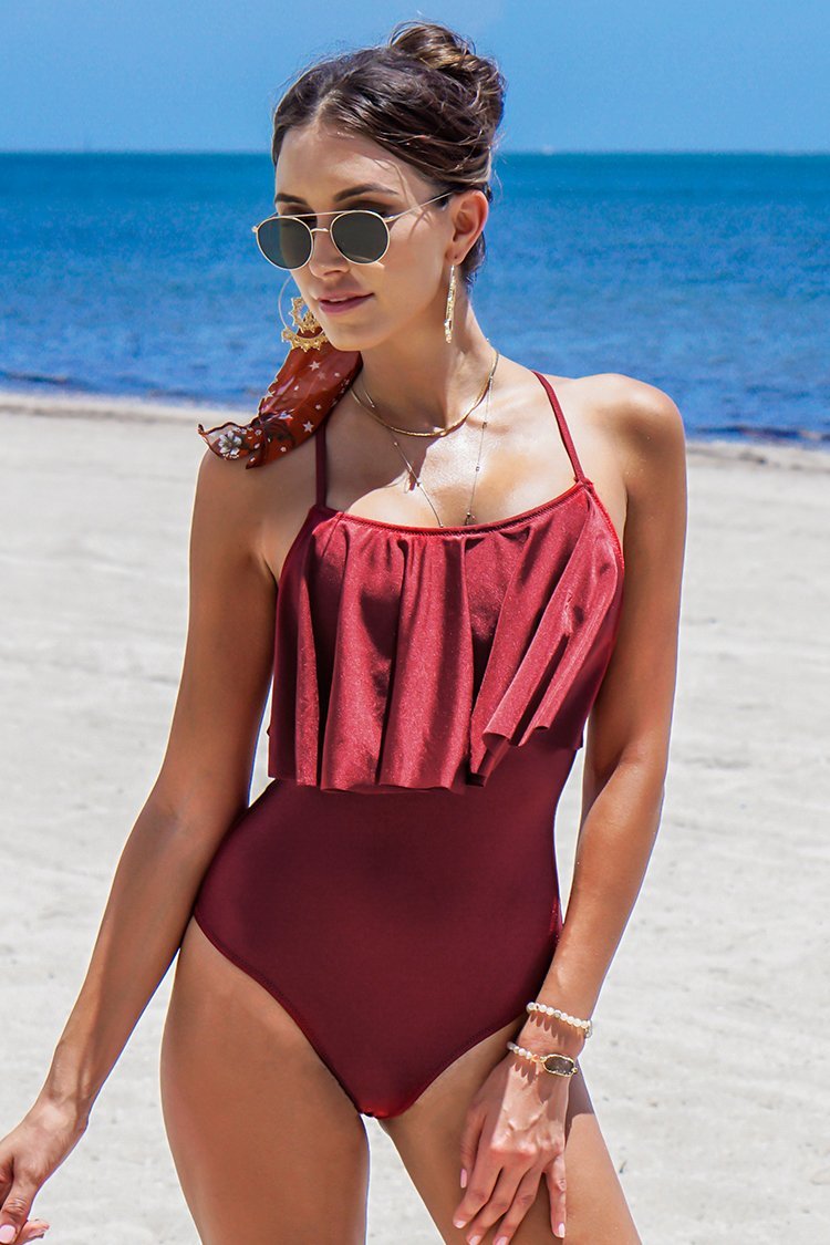 HomeRed Shimmer Flounce One-Piece Swimsuit