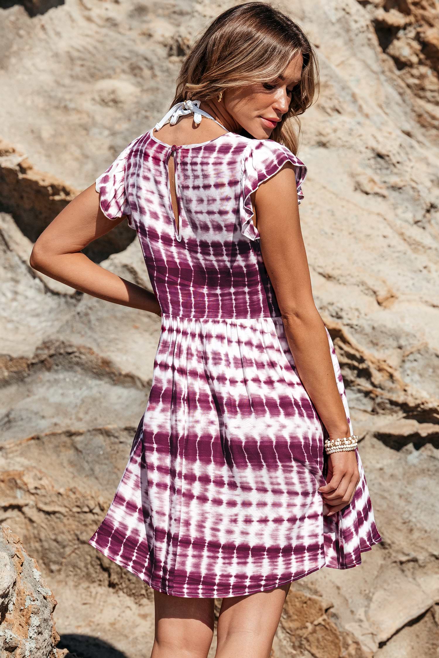 HomeRed Tie Dye Jersey Flutter Sleeve Mini Dress