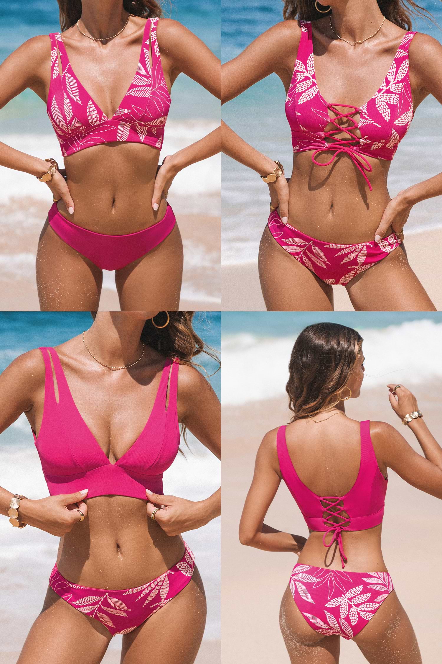 HomeReversible Lace-Up Bikini Top & Standard Bottoms Set