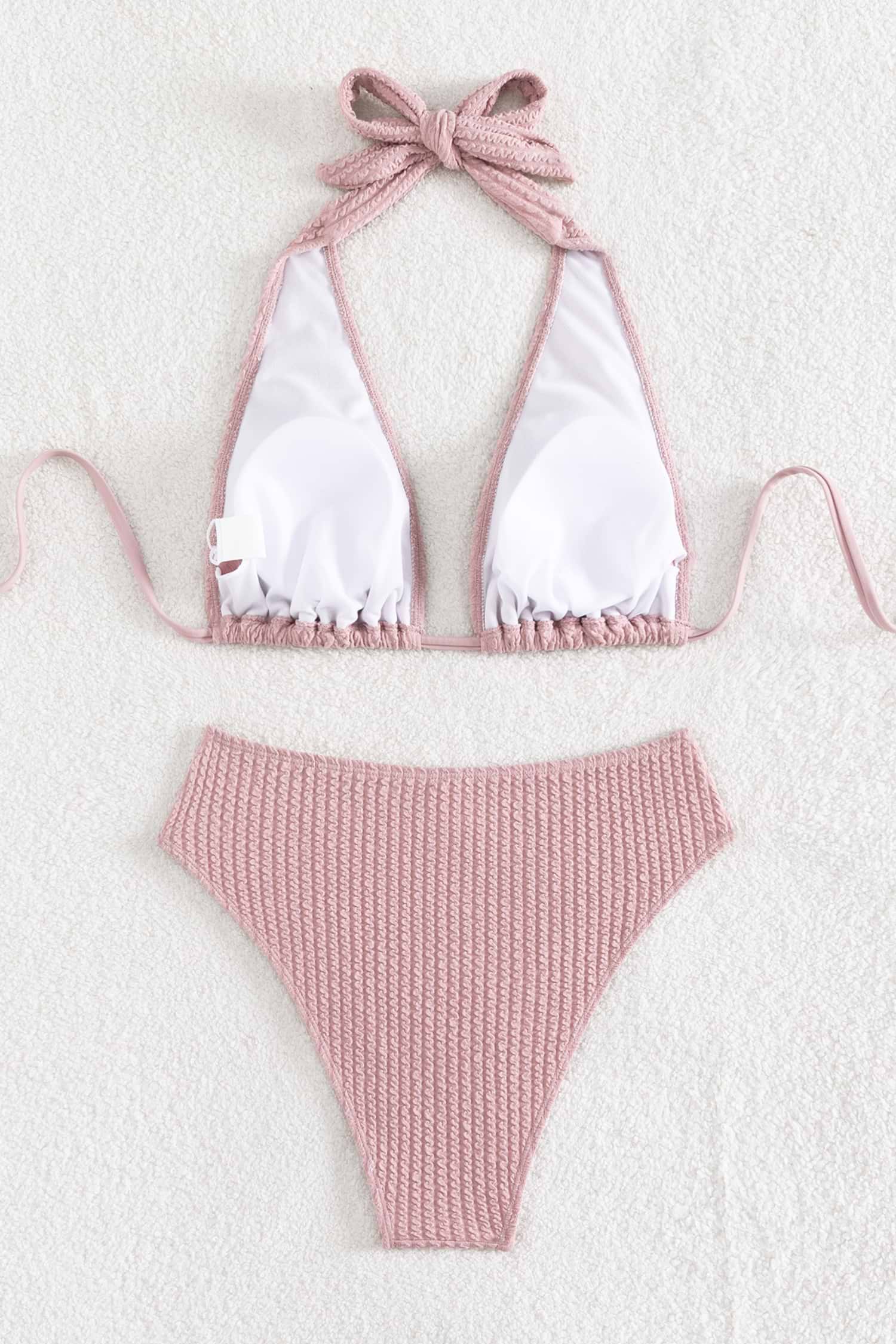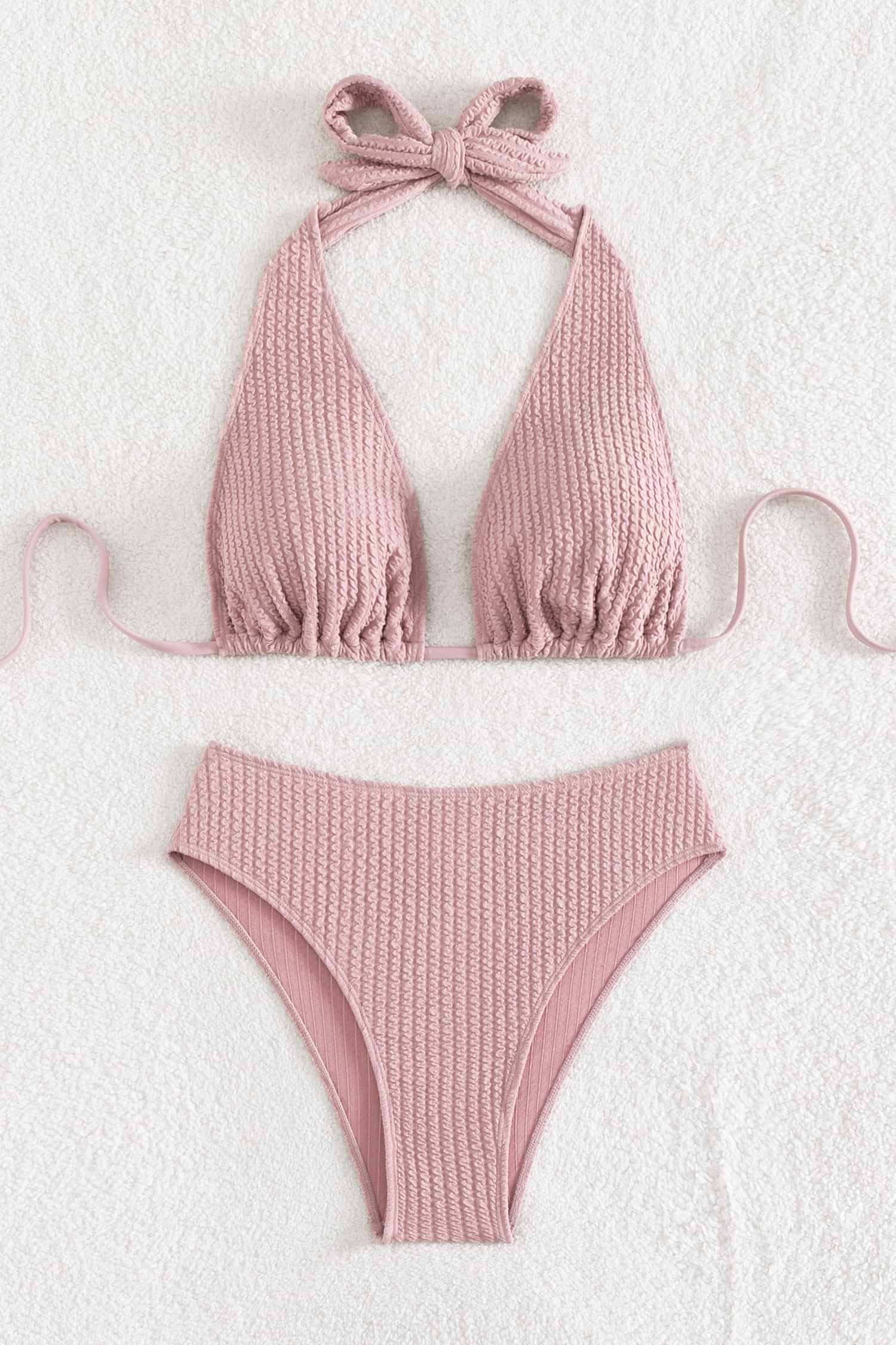 HomeRib Plunging Halter Top & High Waist Bikini Set