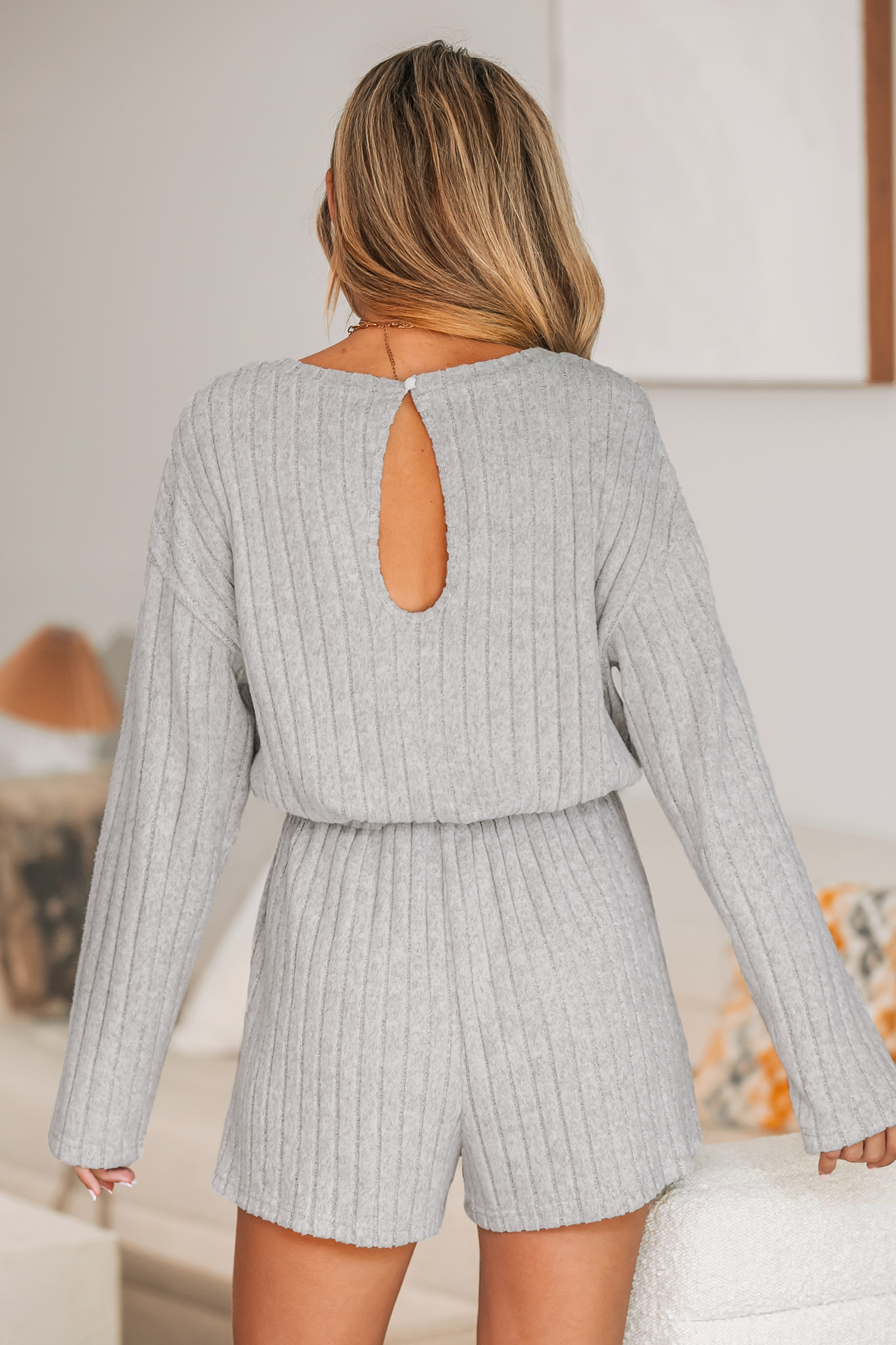 HomeRibbed Drawstring Waist Romper