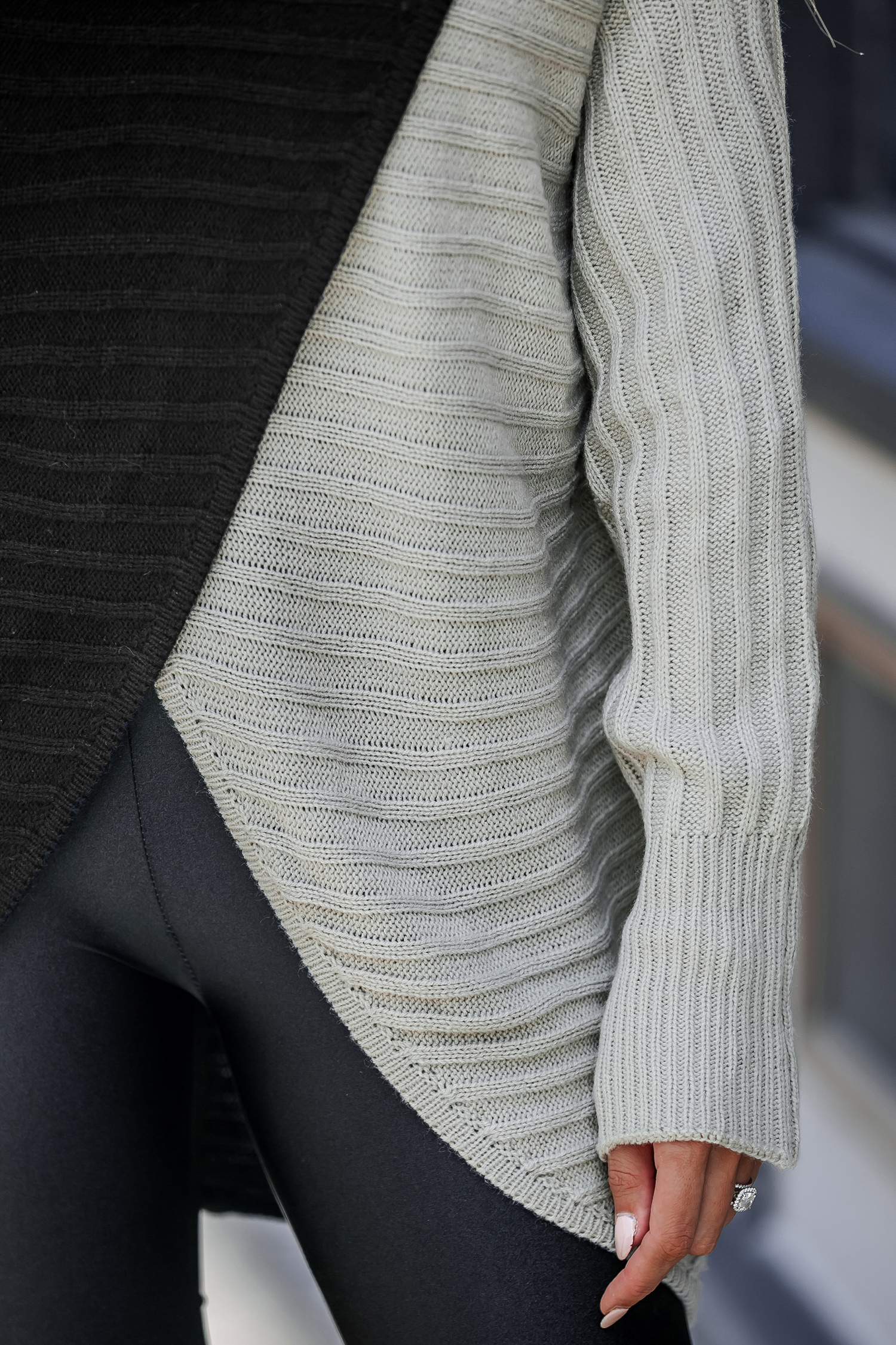 Ribbed Knit Asymmetric Colorblock Turtleneck Sweater