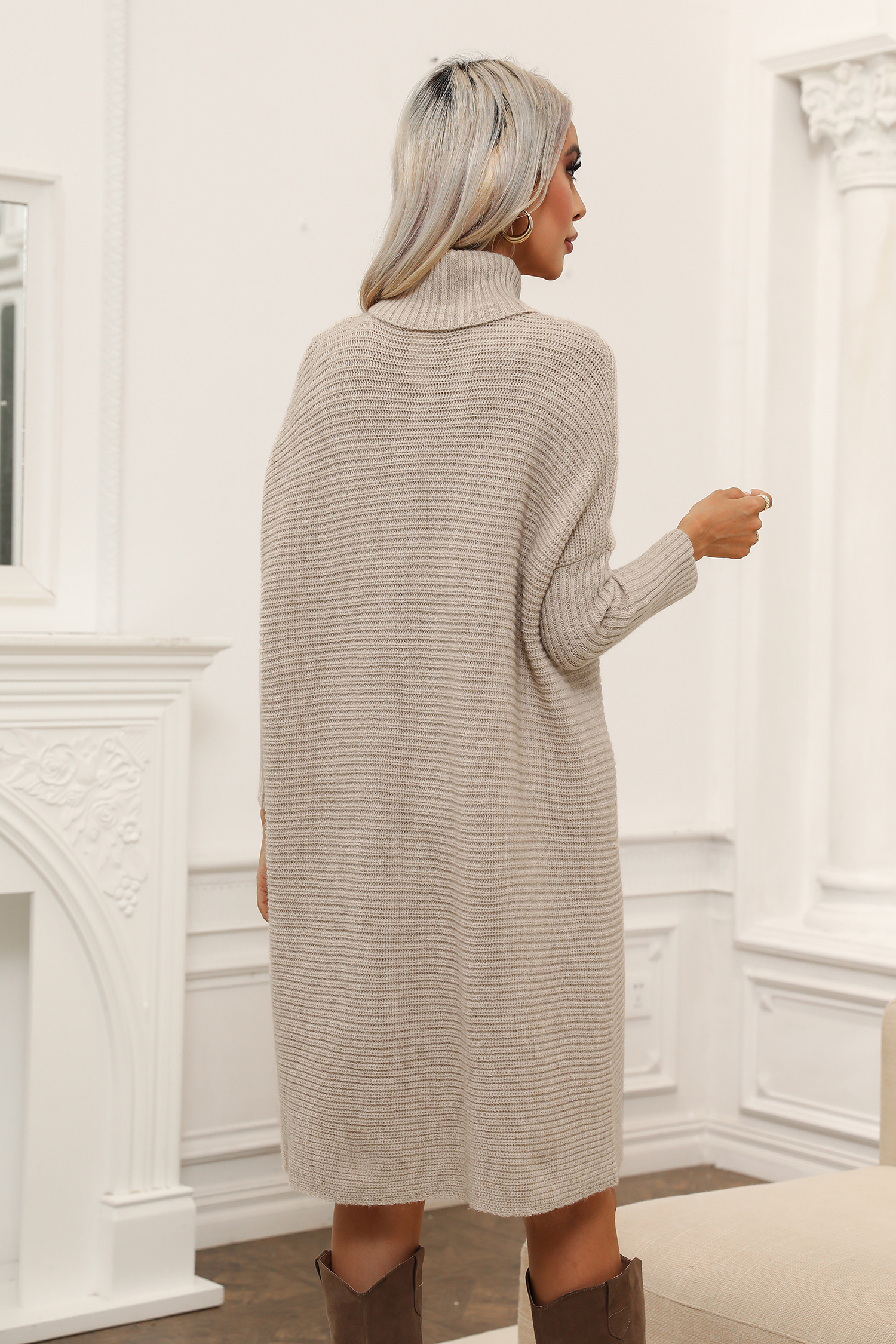 Ribbed Turtleneck Mini Sweater Dress