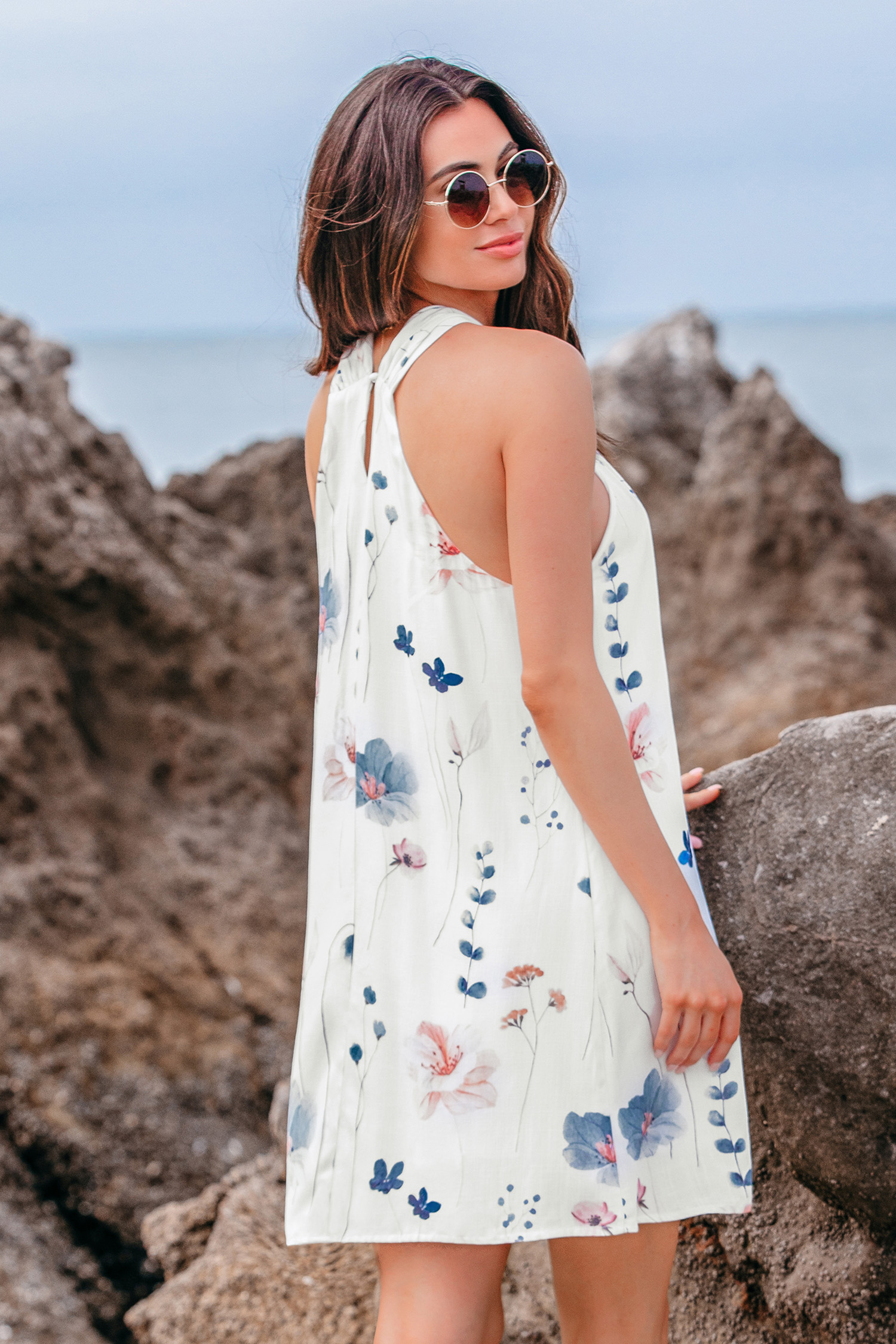 HomeRomantic Floral Crossover Halterneck Mini Dress