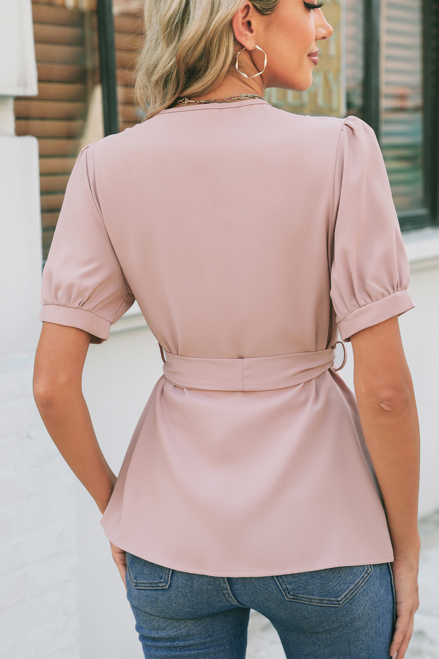Rose Puff Sleeve Wrap Blouse