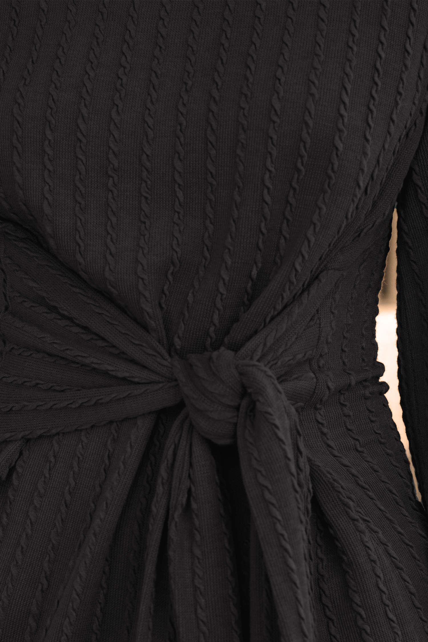 HomeRound Neck Knotted Sash Mini Dress