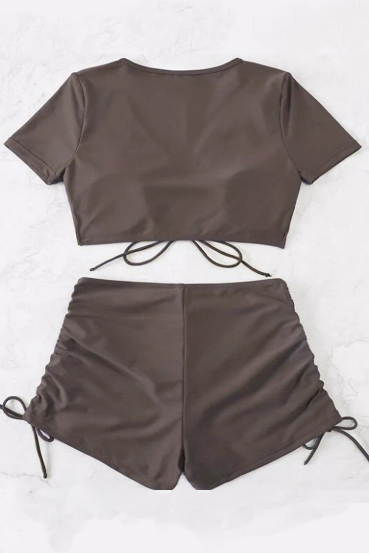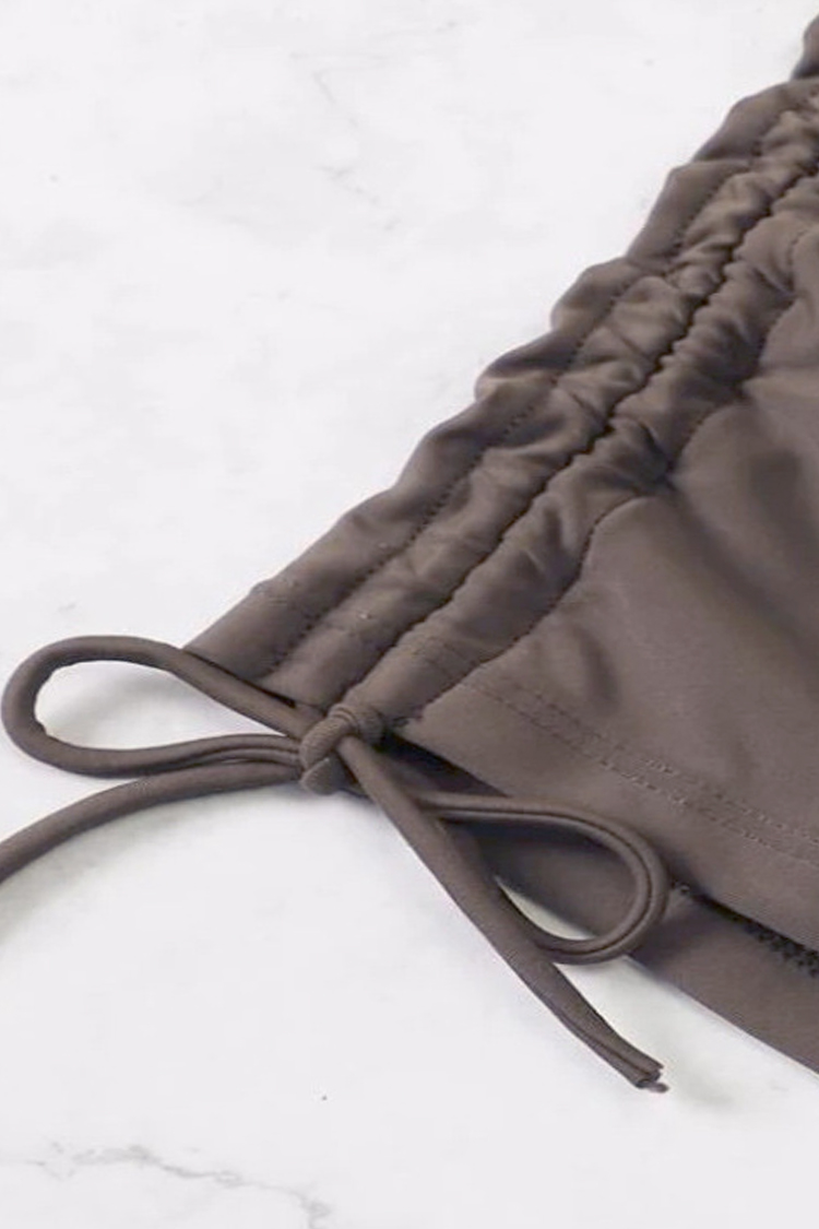 HomeRuched Drawstring V Neck Midkini & High Waist Shorts Set