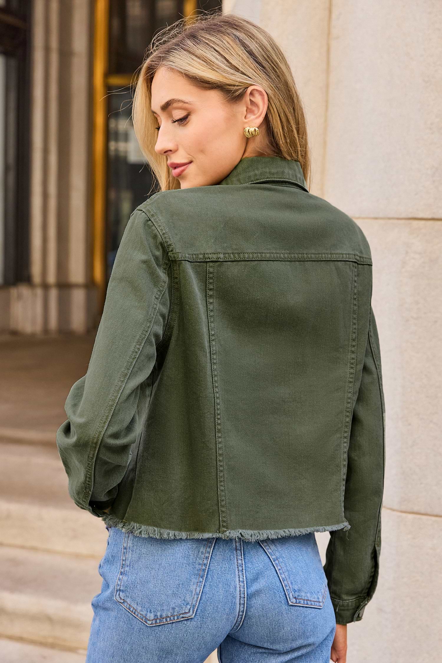 Sage Collared Long Sleeve Frayed Hem Jacket