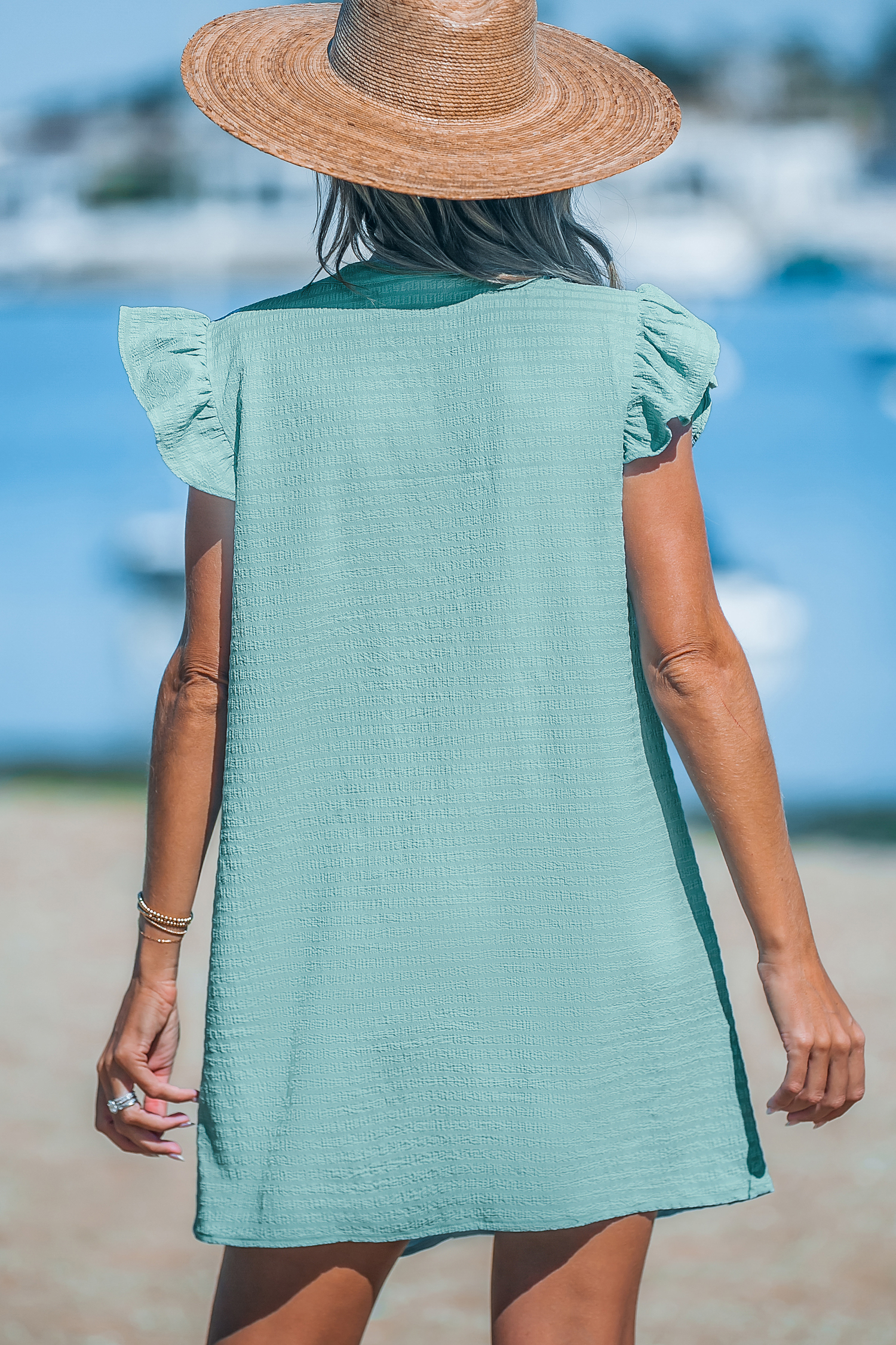 Sage V-Neck Flutter Sleeve Mini Dress
