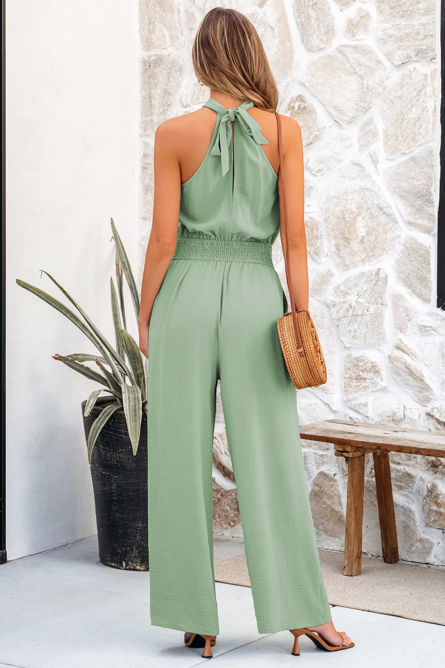 HomeSage Green Keyhole Straight Leg Jumpsuit