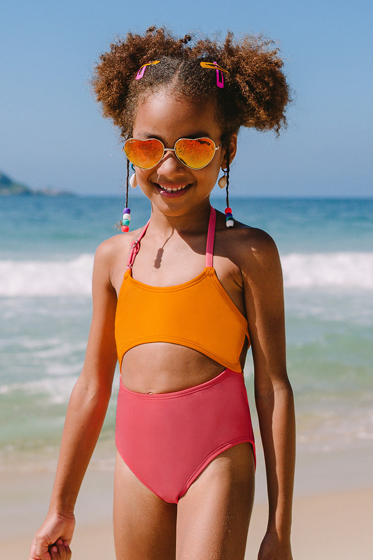 • Santorini Solid Girls’ Cutout One Piece Swimsuit