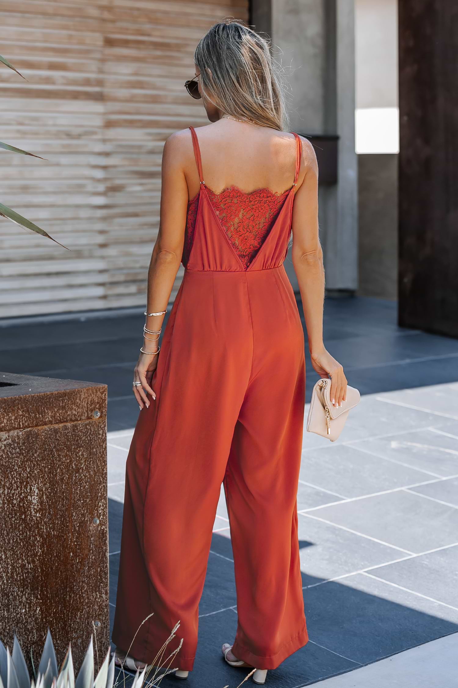HomeSatin V-Neck Lace Jumpsuit
