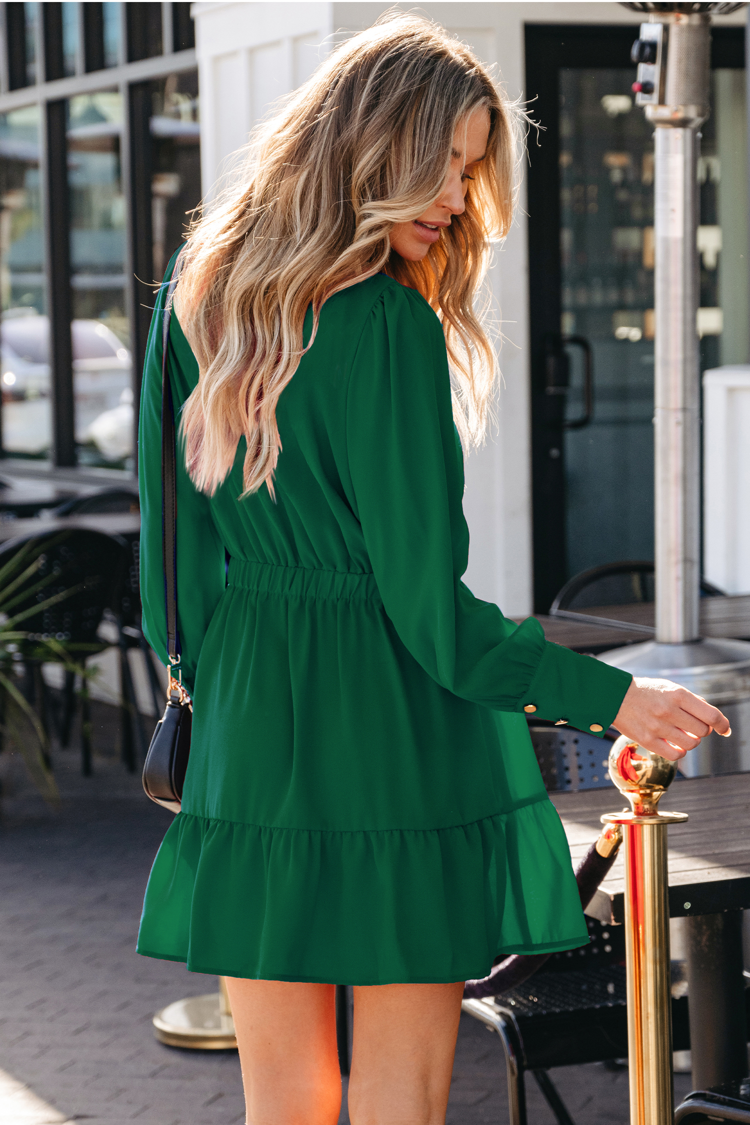 Scoop Long Sleeve Ruffled Mini Dress