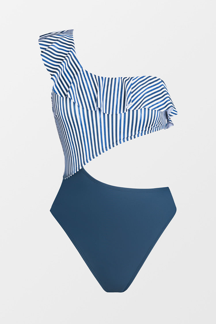Home4th of July Sea Shore Stripe Ruffled One Shoulder One Piece Swimsuit