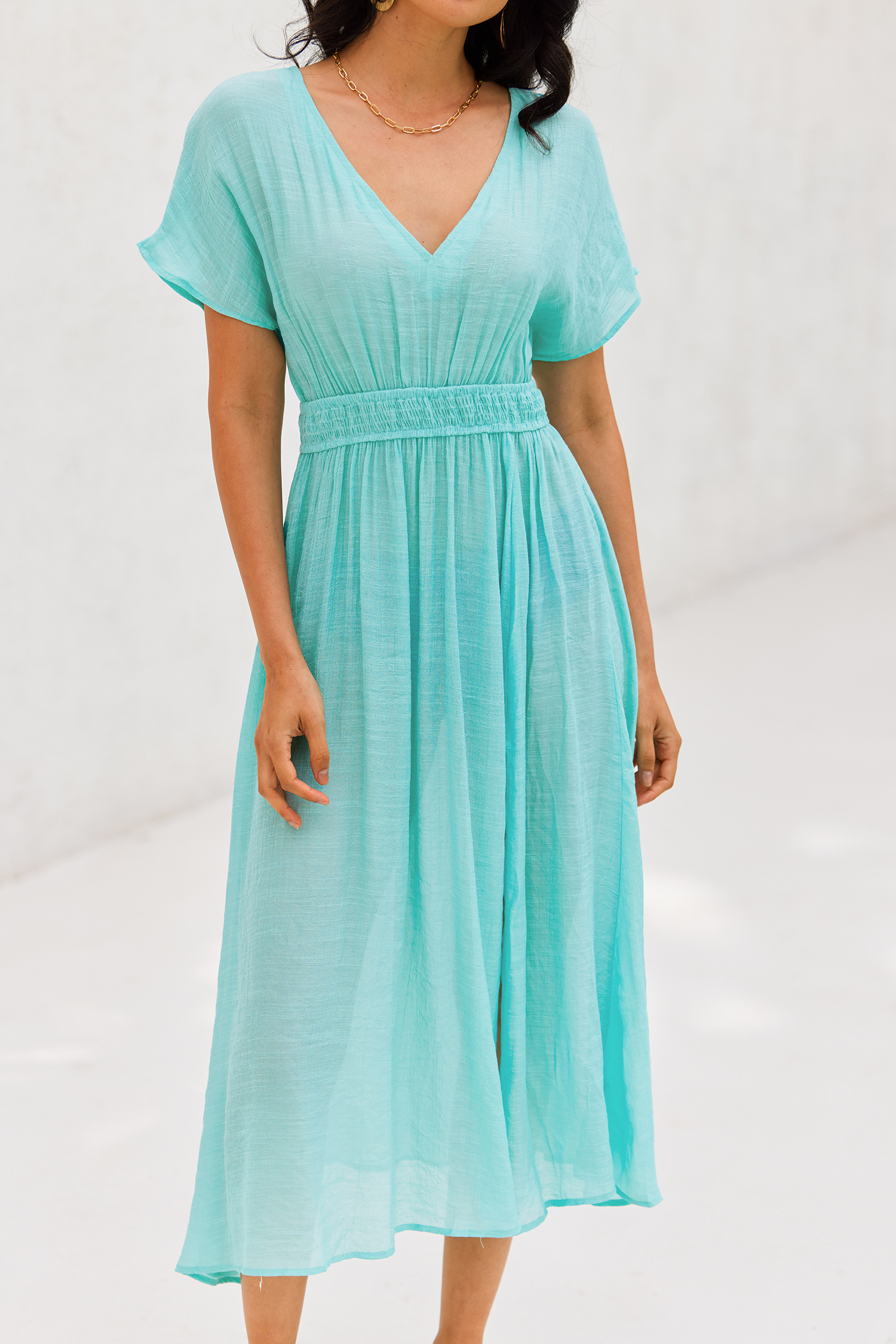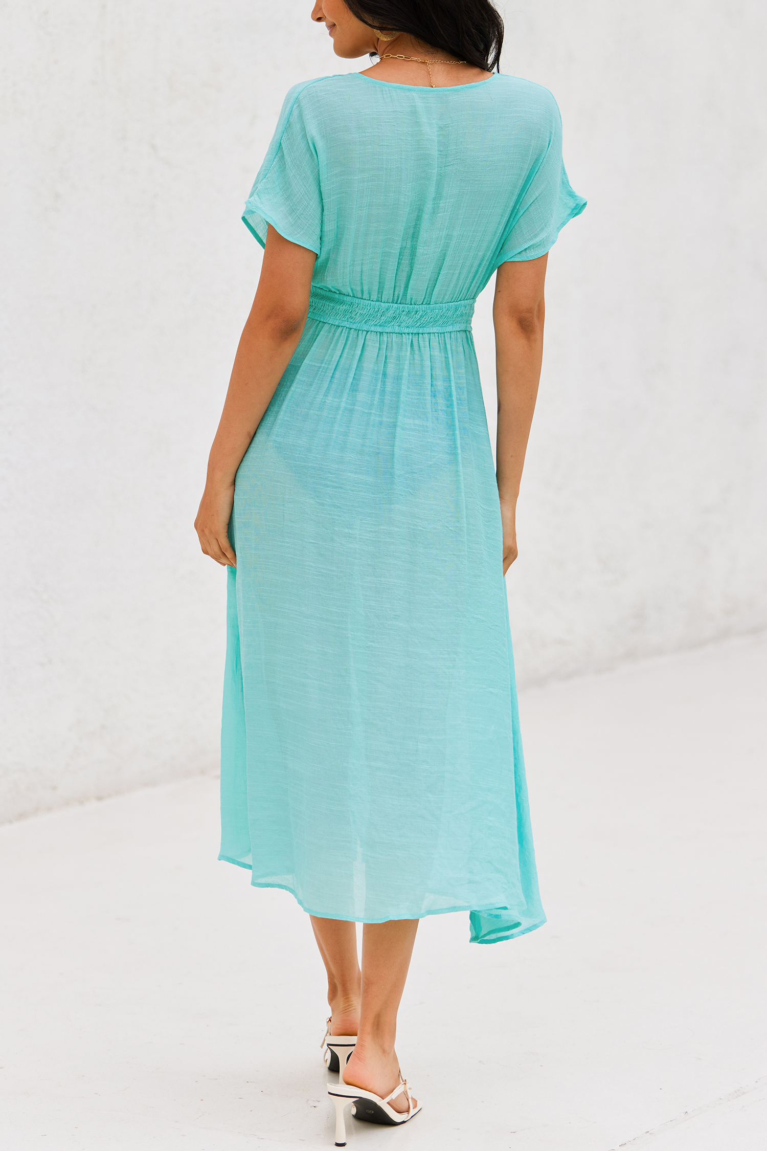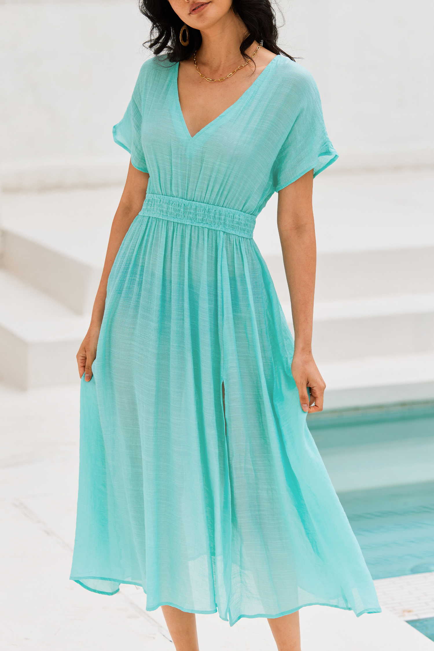 Seafoam Plunging Smocked Cover-Up Maxi Dress