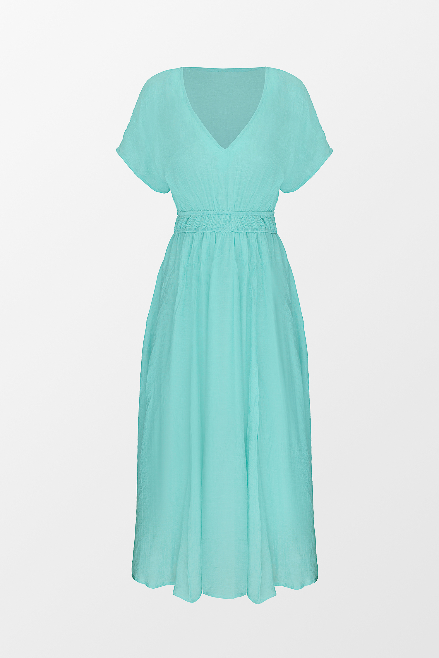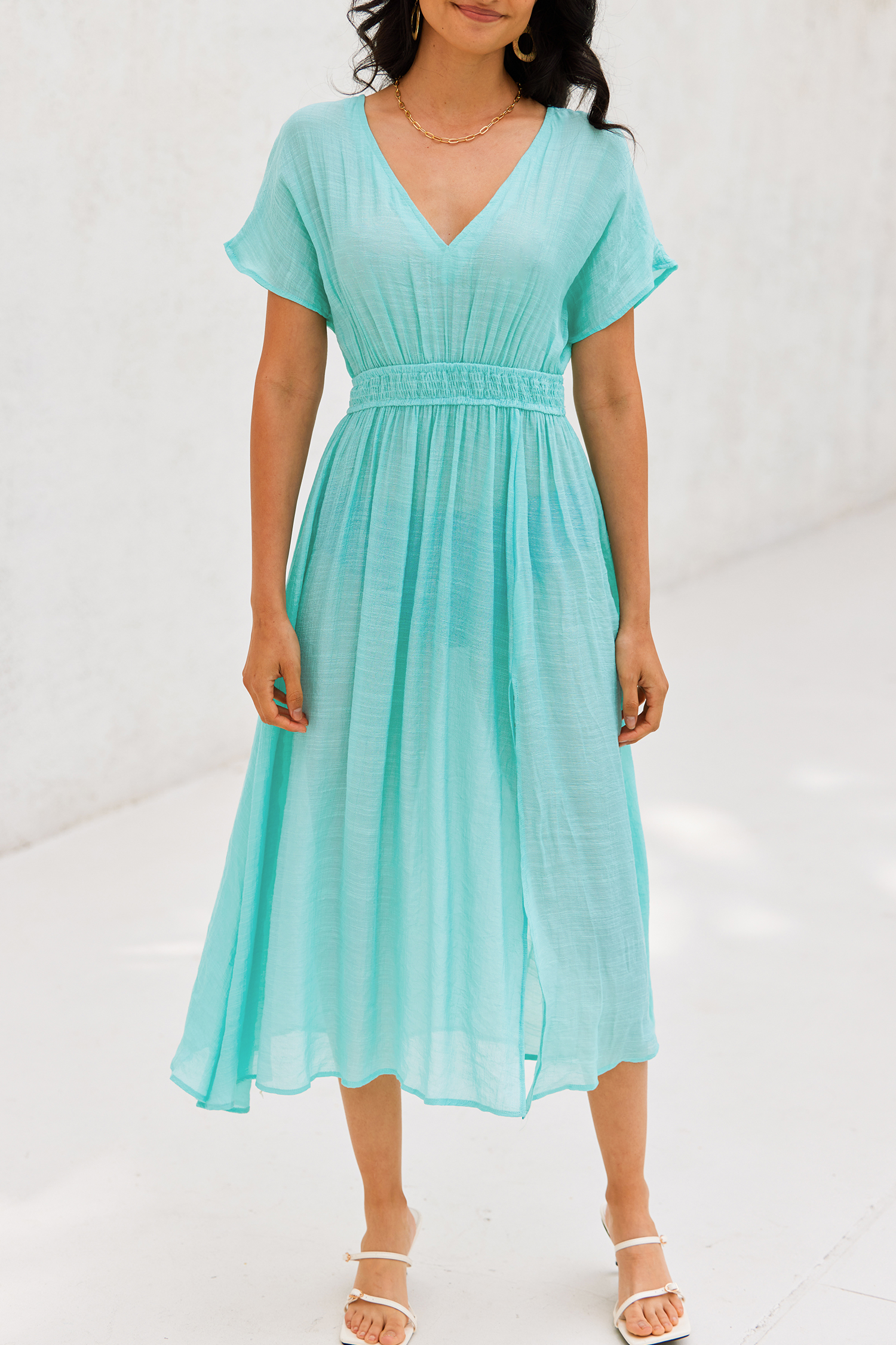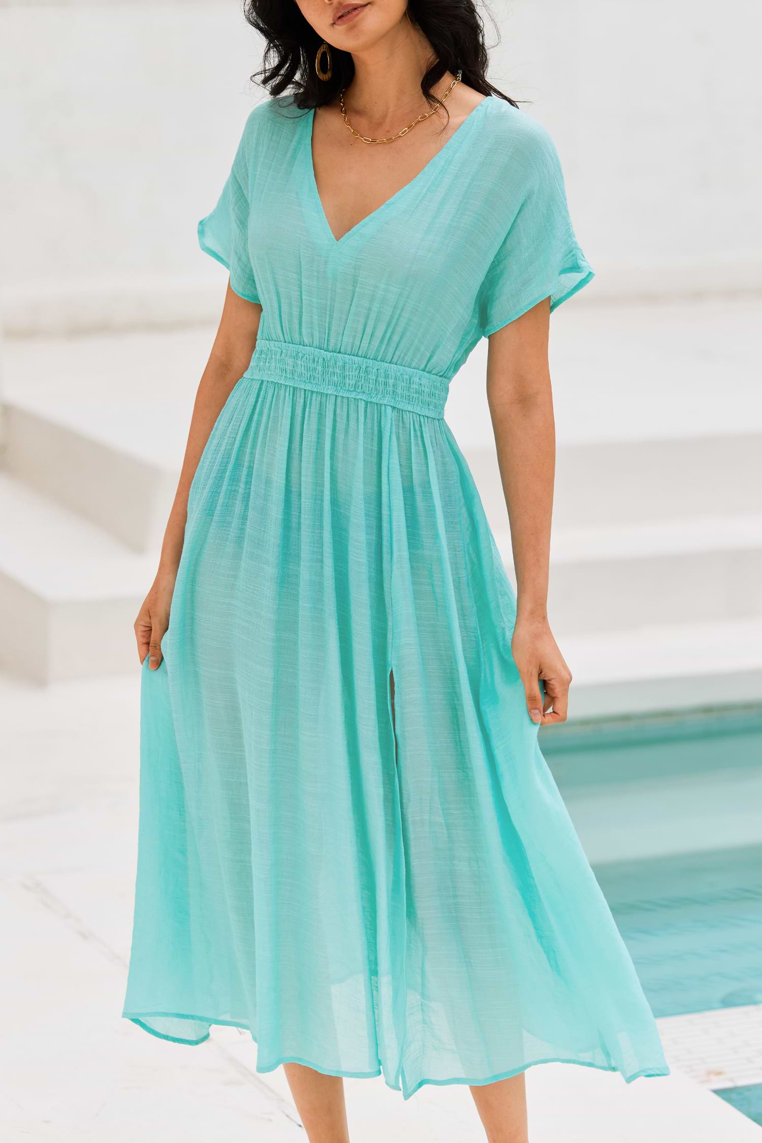 Seafoam Plunging Smocked Cover-Up Maxi Dress