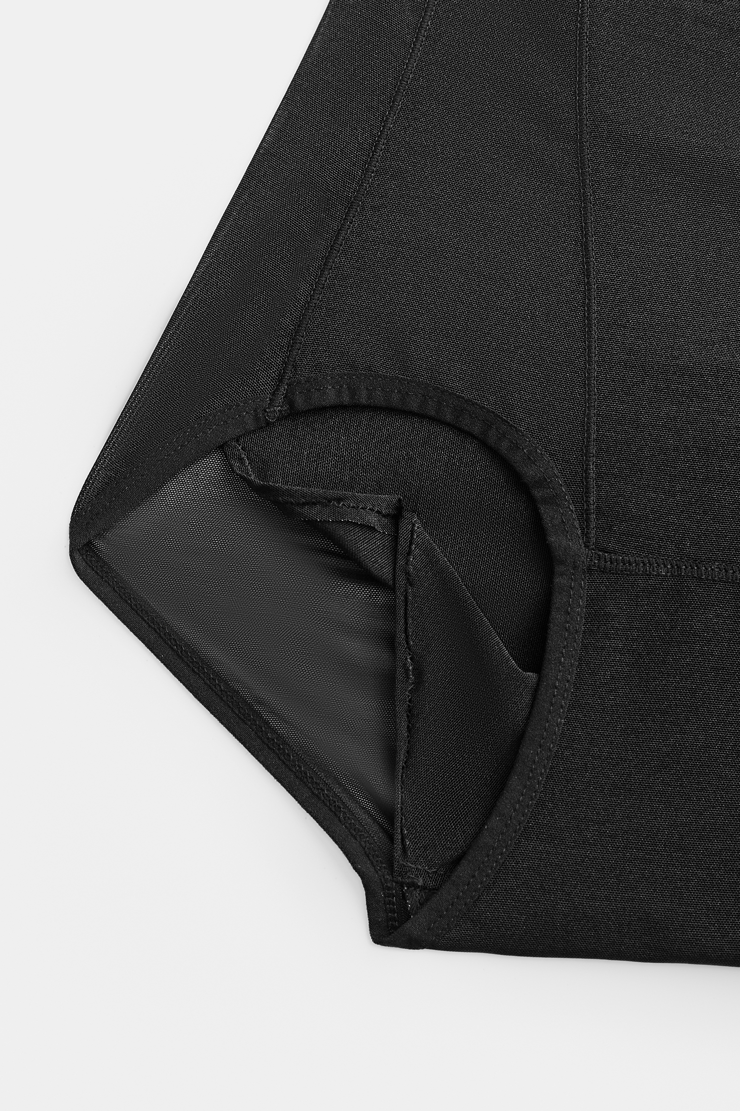 The Sheer Control Black Shapewear Briefs bring lightness and support together for a smooth, breathable feel! Designed with a high-waisted fit, abdominal support, period friendly protection, and medium compression for shaping that stays comfy and confident.