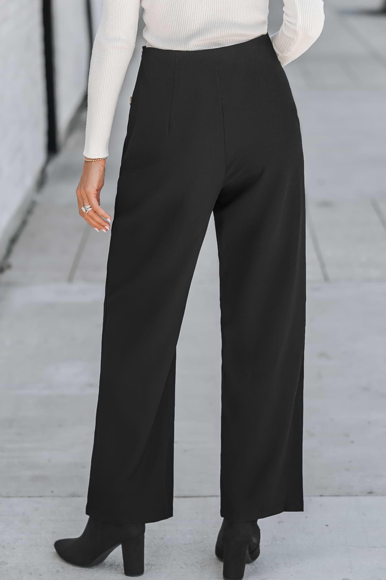 Side Button Straight Leg Pants
