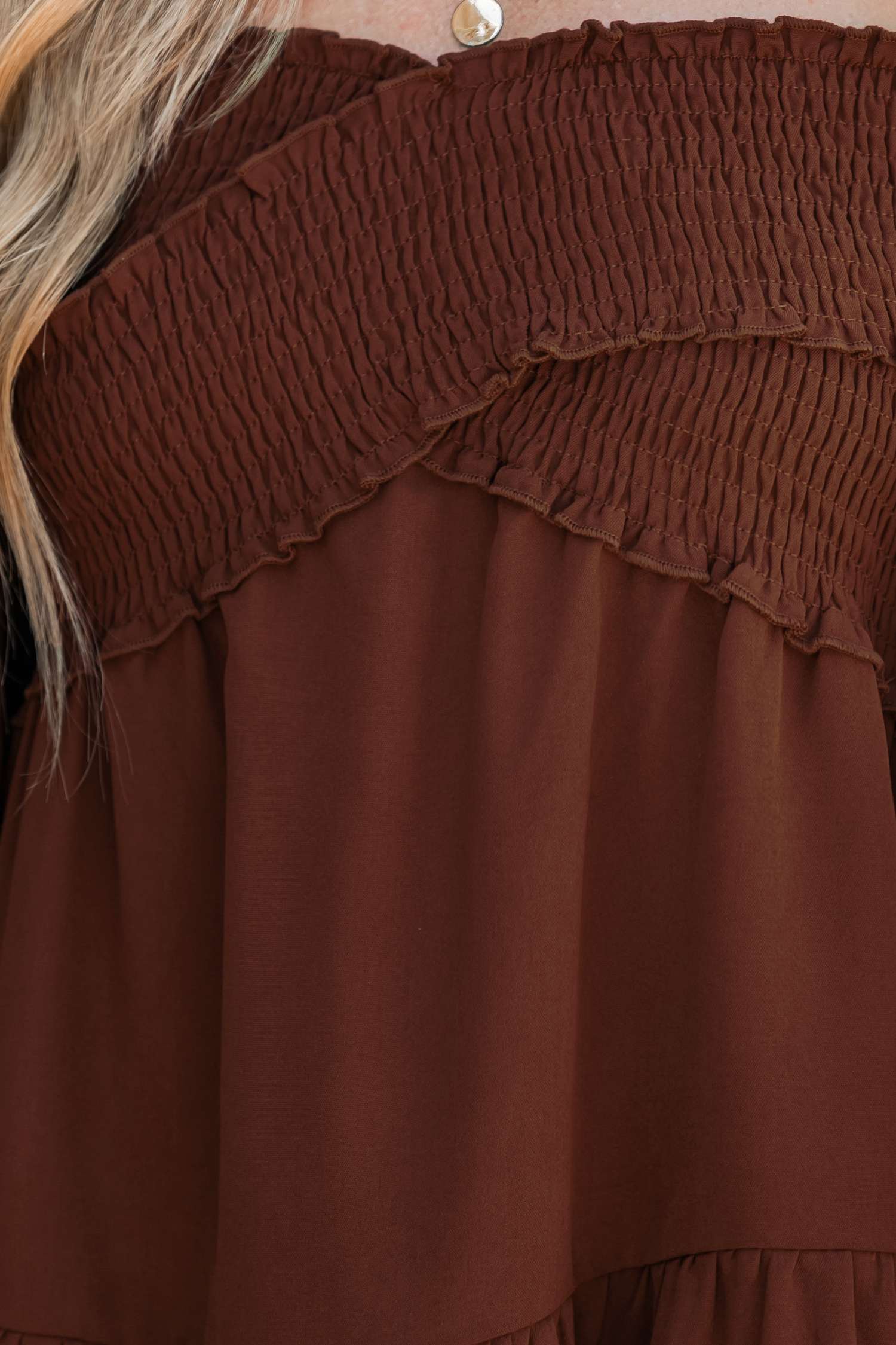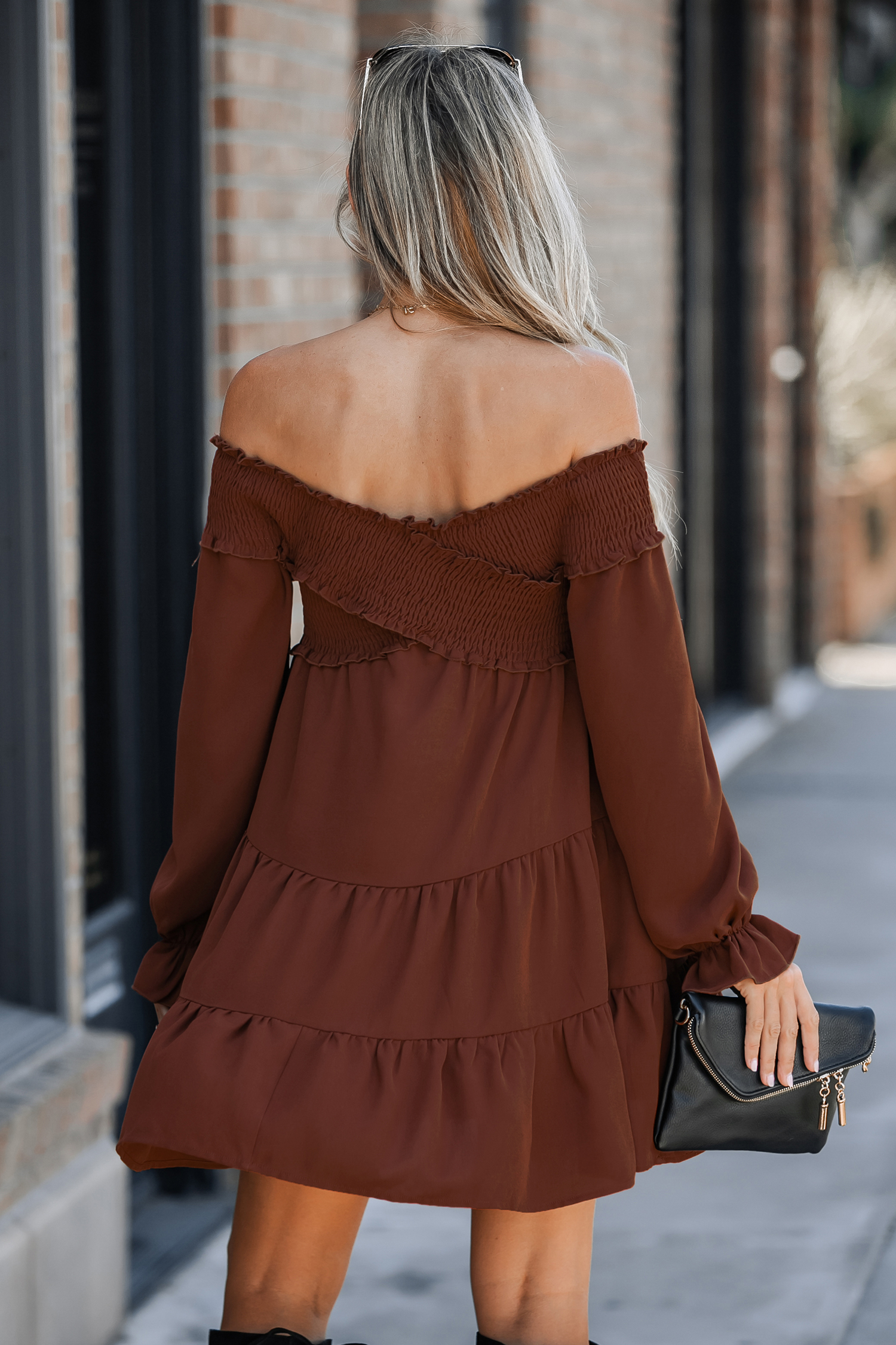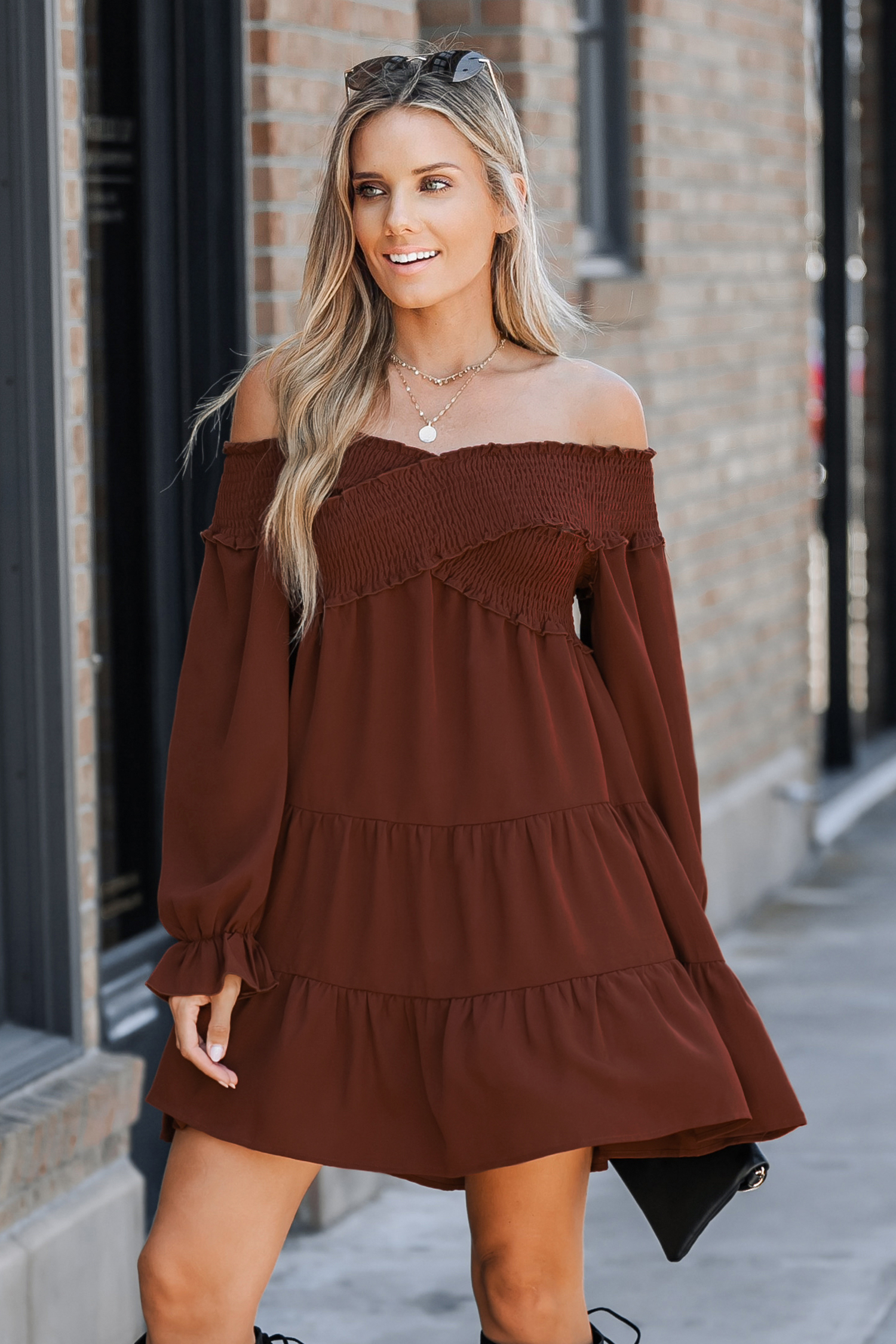 HomeSmocked Crisscross Off-the-Shoulder Dress