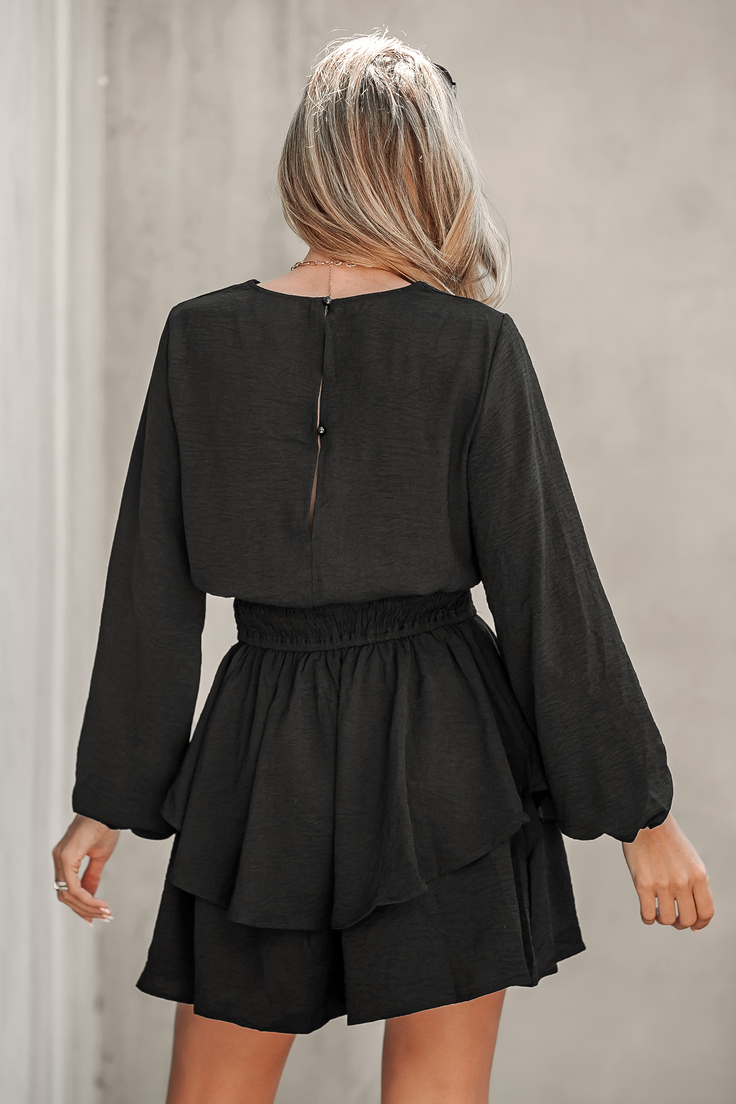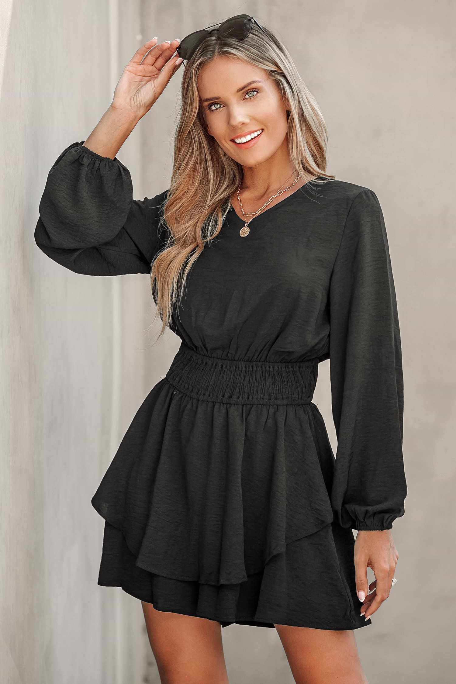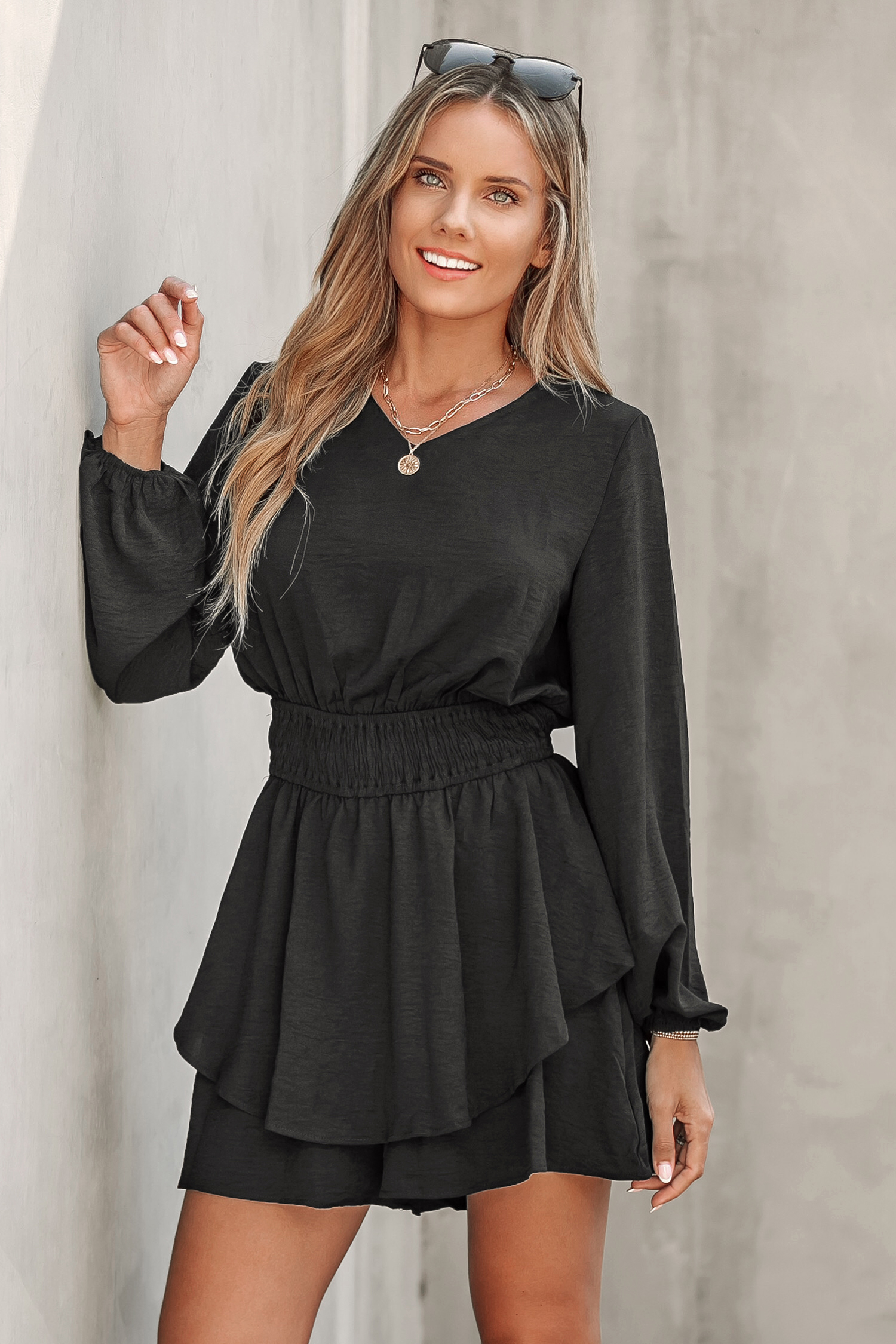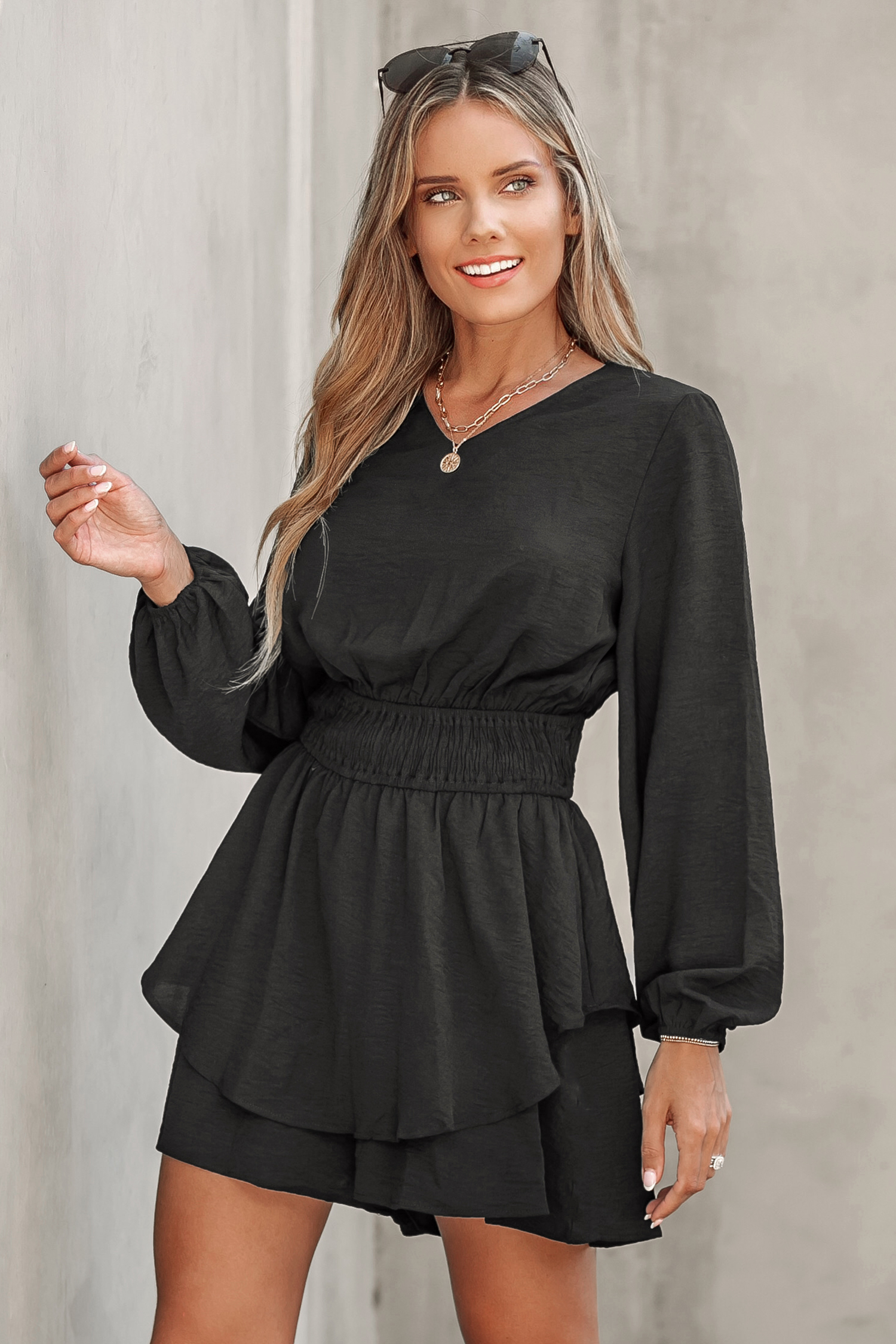 HomeSmocked Peasant Sleeve Ruffled Romper