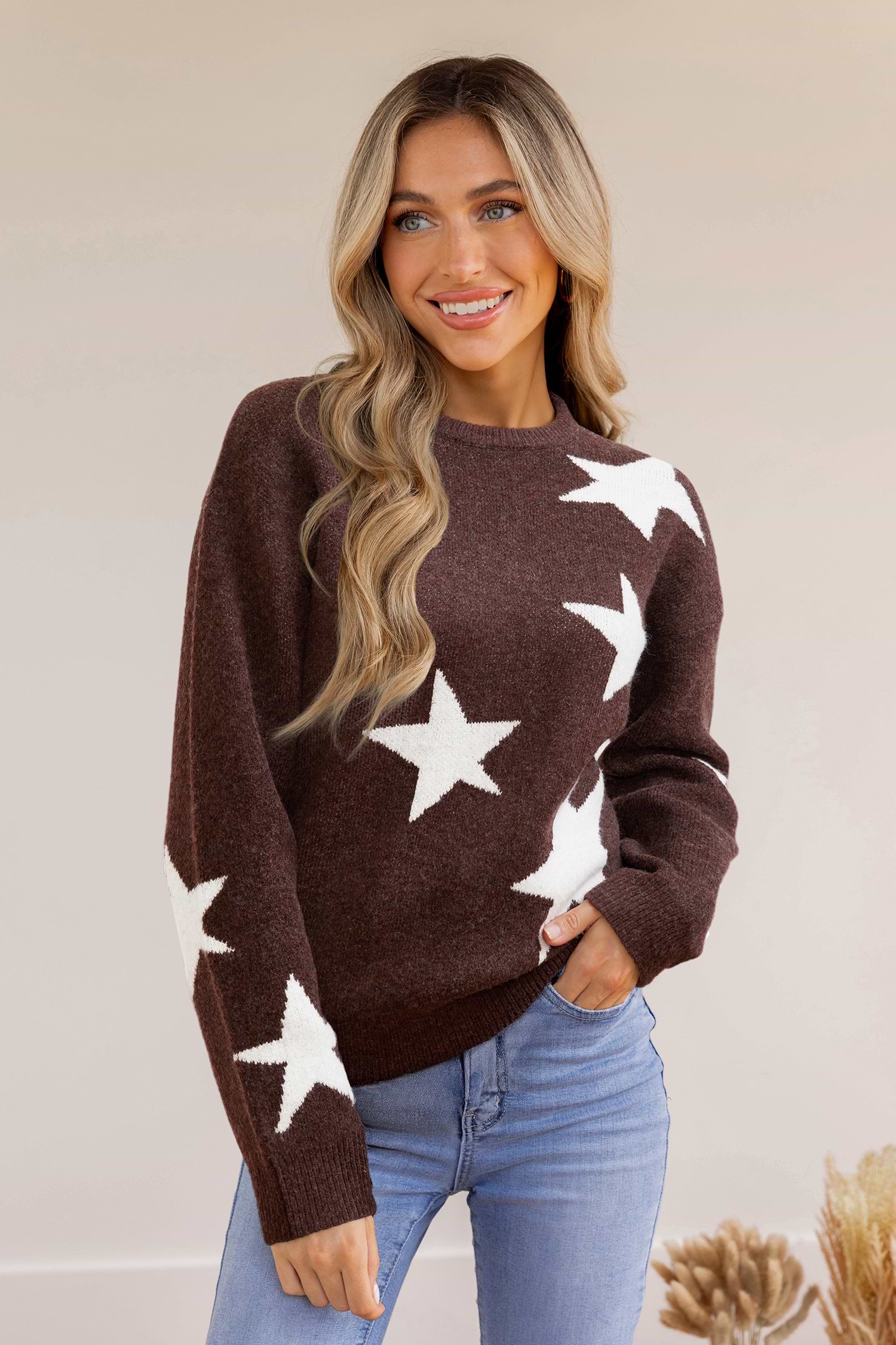 The Star Power Brown Sweater is made to bring confidence and warmth to your look! The round neckline and long sleeves create a relaxed, flattering fit perfect for everyday style.