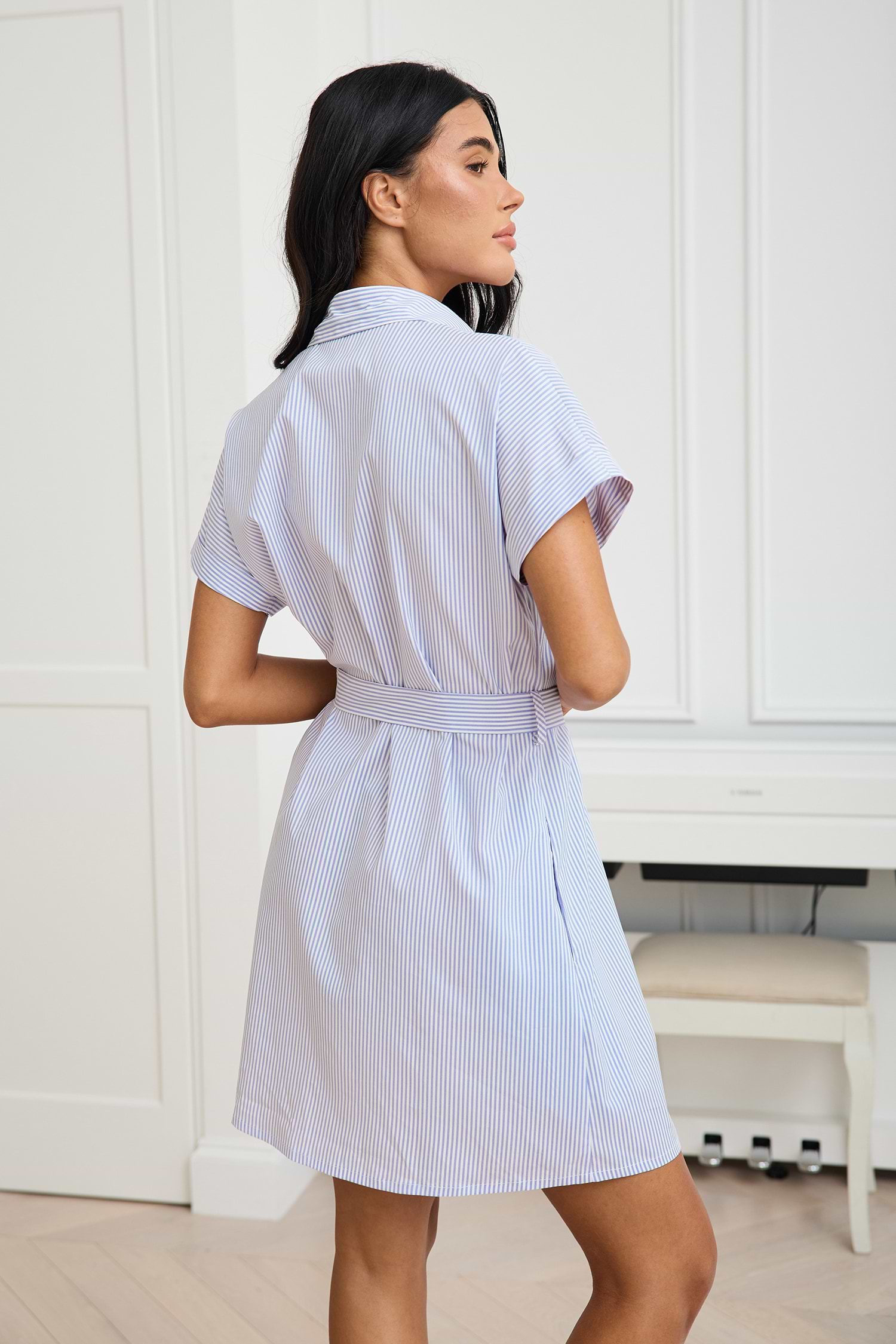 HomeStriped Collared Button-Up Mini T-Shirt Dress