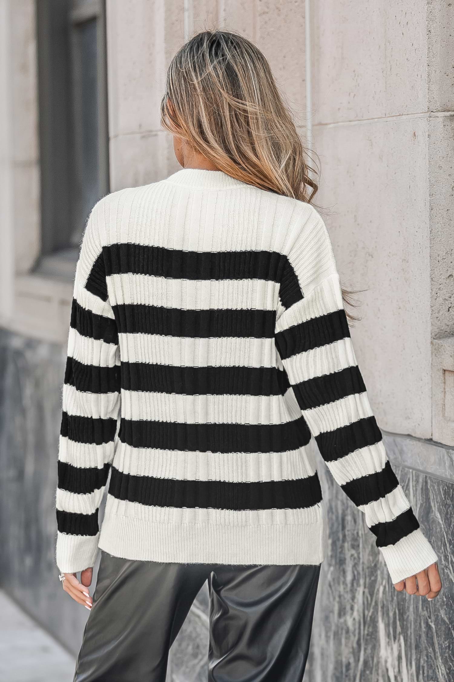 Striped Half-Buttoned Sweater