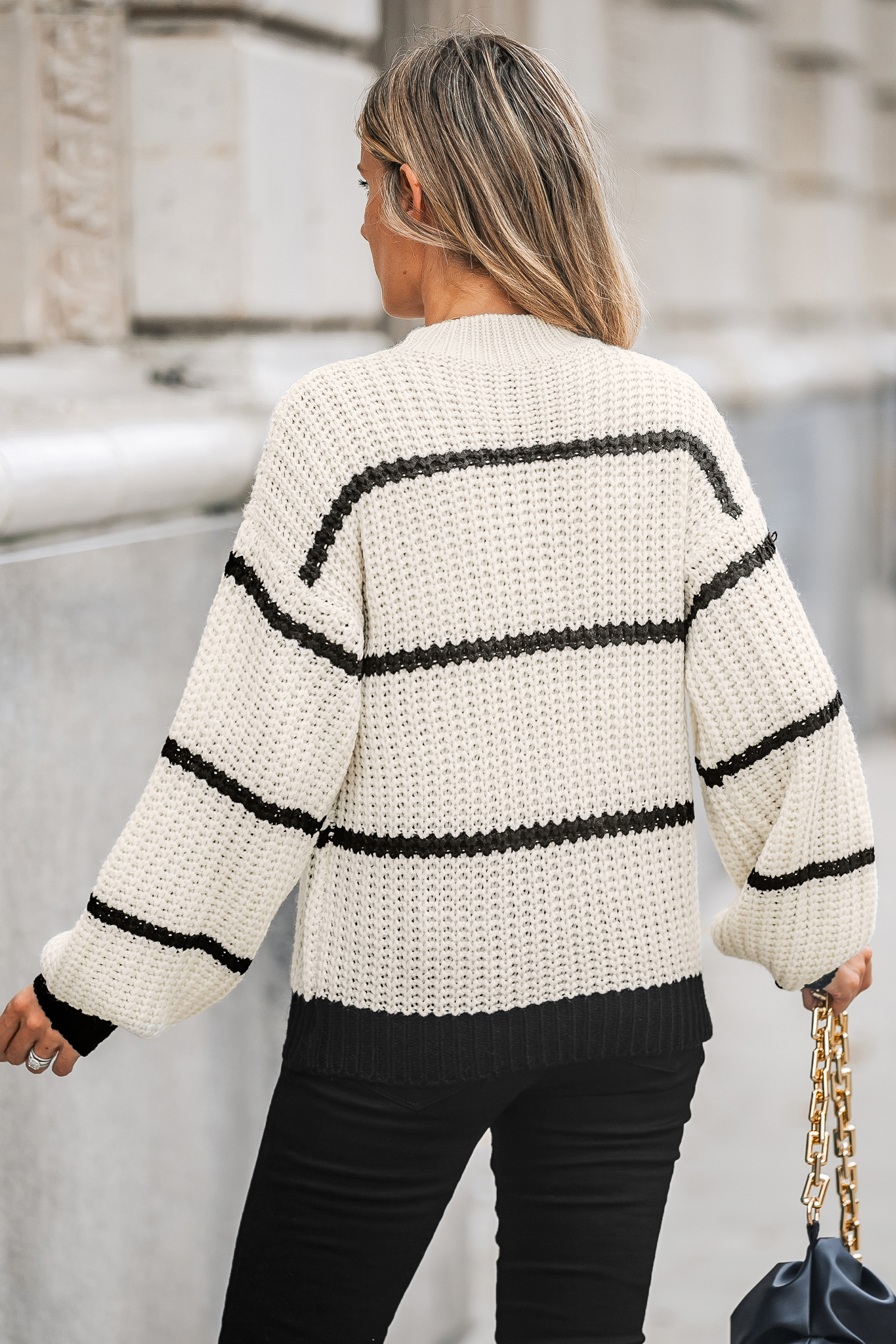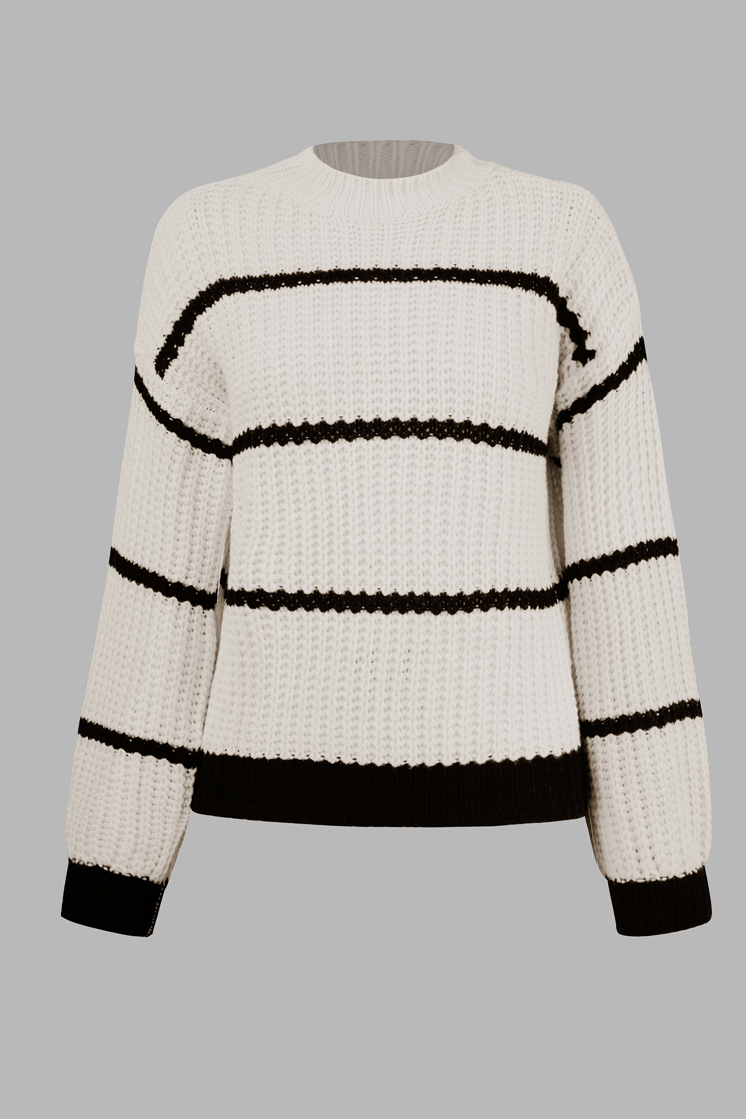 Influencer Edits Striped Mock Neck Chunky Knit Sweater