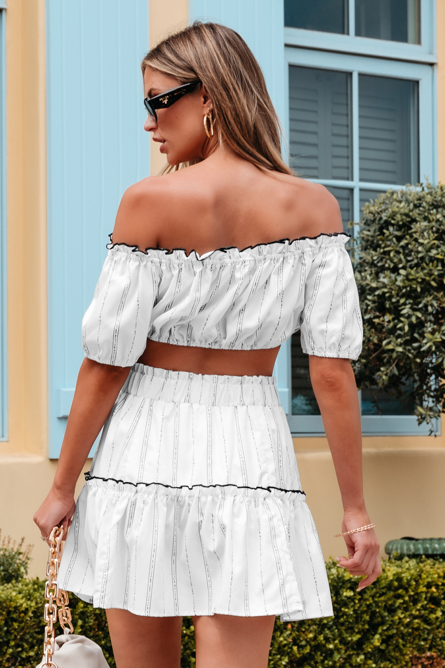 Striped Puff Sleeve Crop Top & Mini Skirt Set