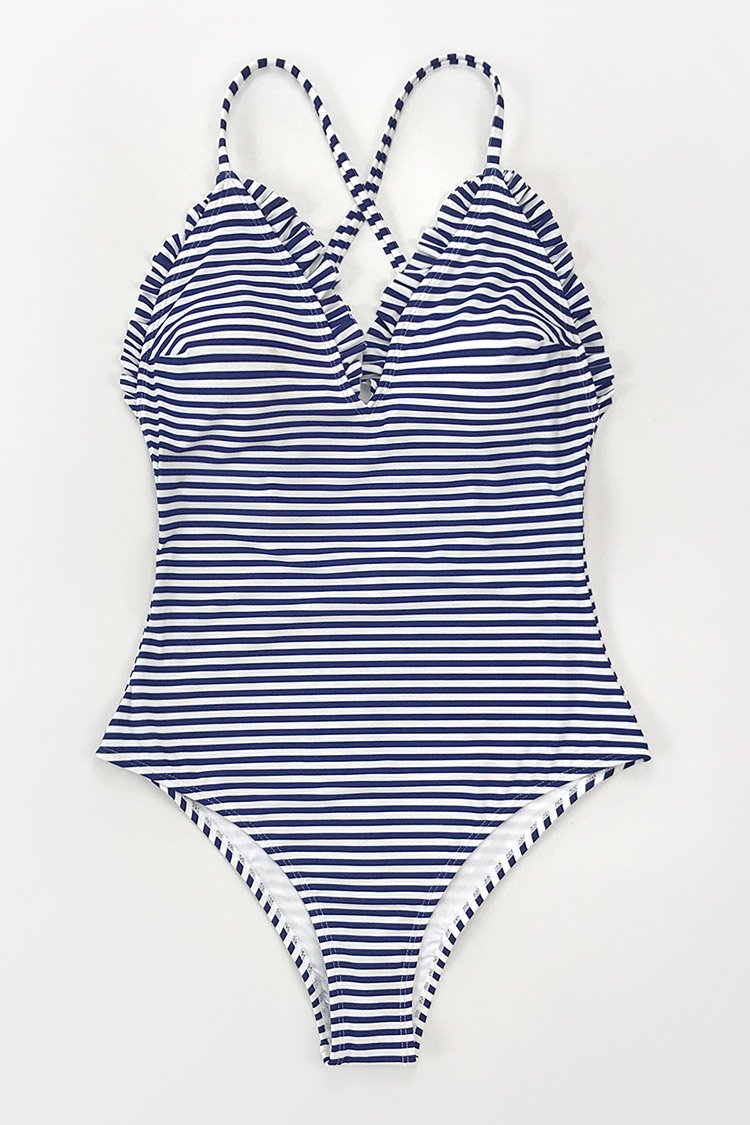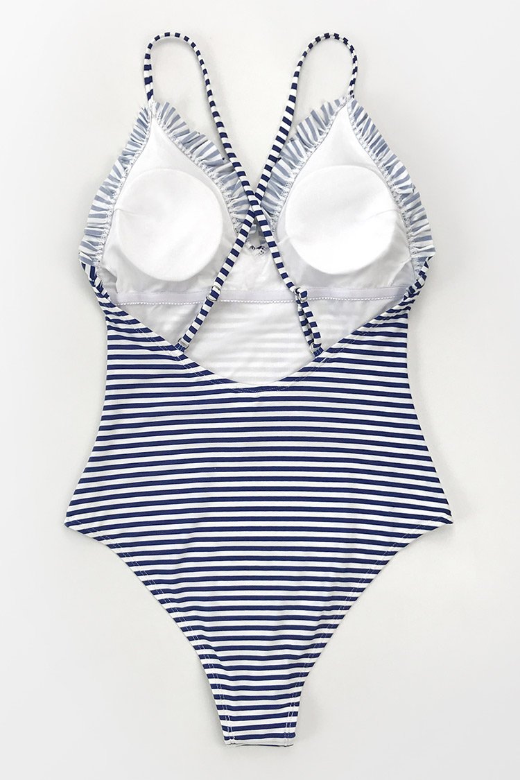 HomeStriped Ruffled One-Piece Swimsuit