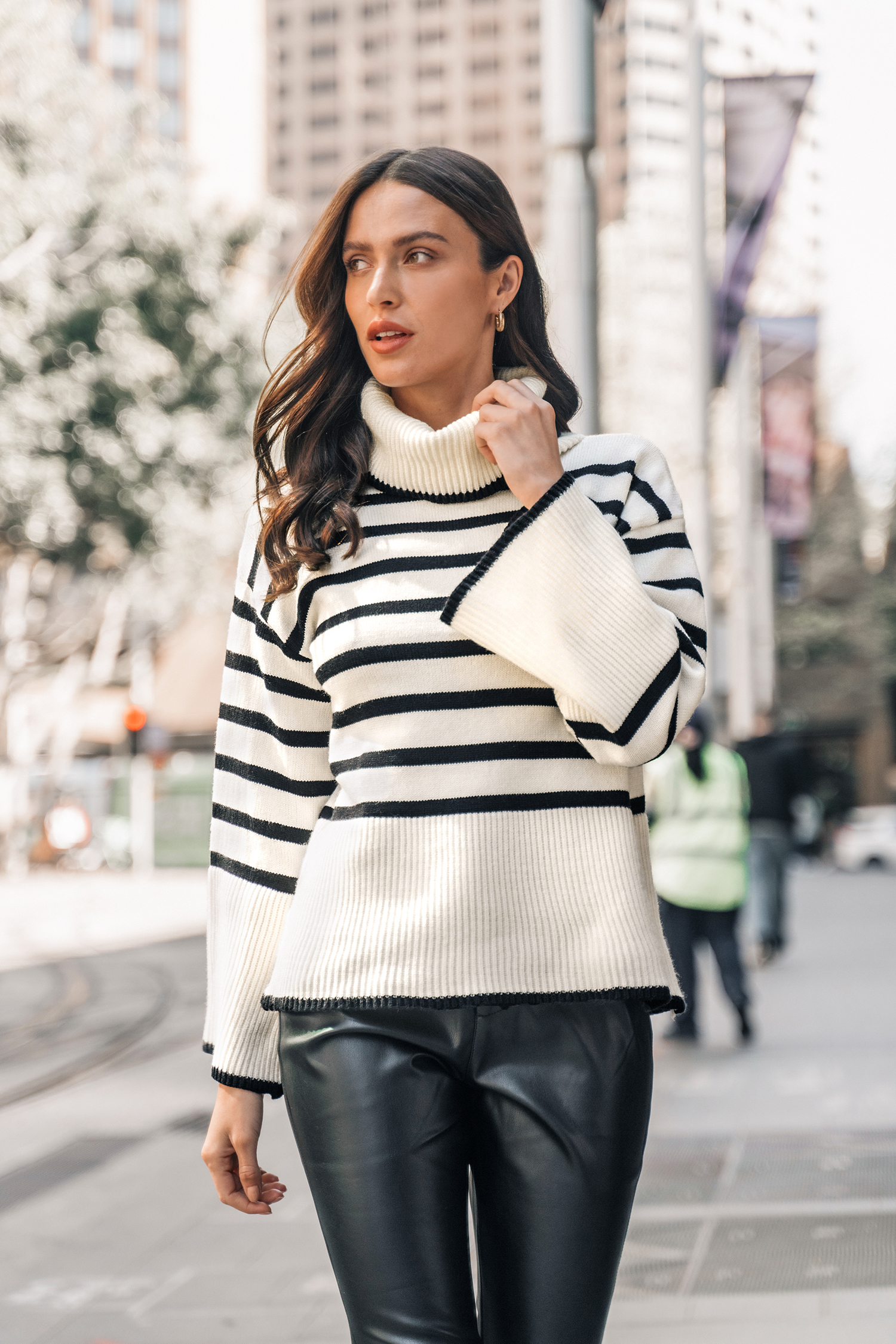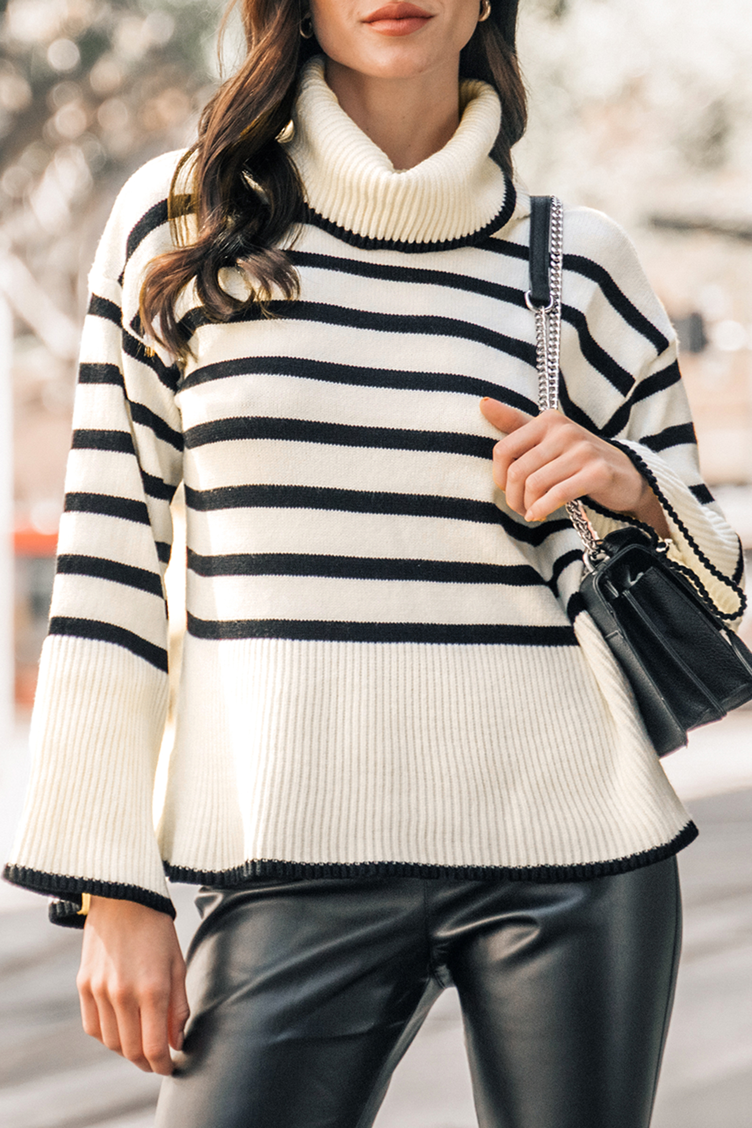 Striped Turtleneck Oversized Sweater