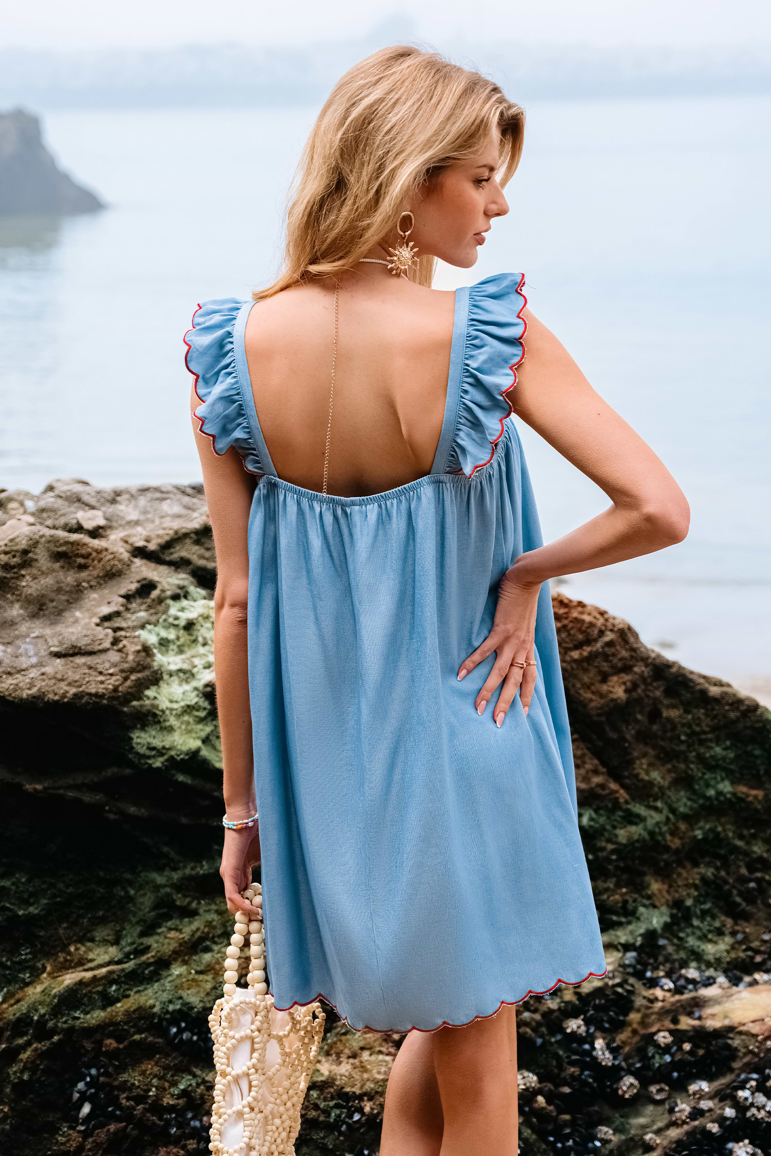 The Sun Meadow Blue Mini Dress feels like a fresh breeze on a summer day! Featuring a square neckline, sleeveless design, and playful ruffled trim, this mini is made for easygoing style.